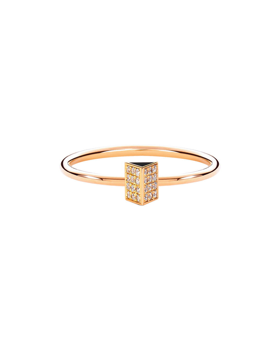 Molu Pırlantalı Siyah Mineli 18 Ayar Pembe Altın Piramit Yüzük