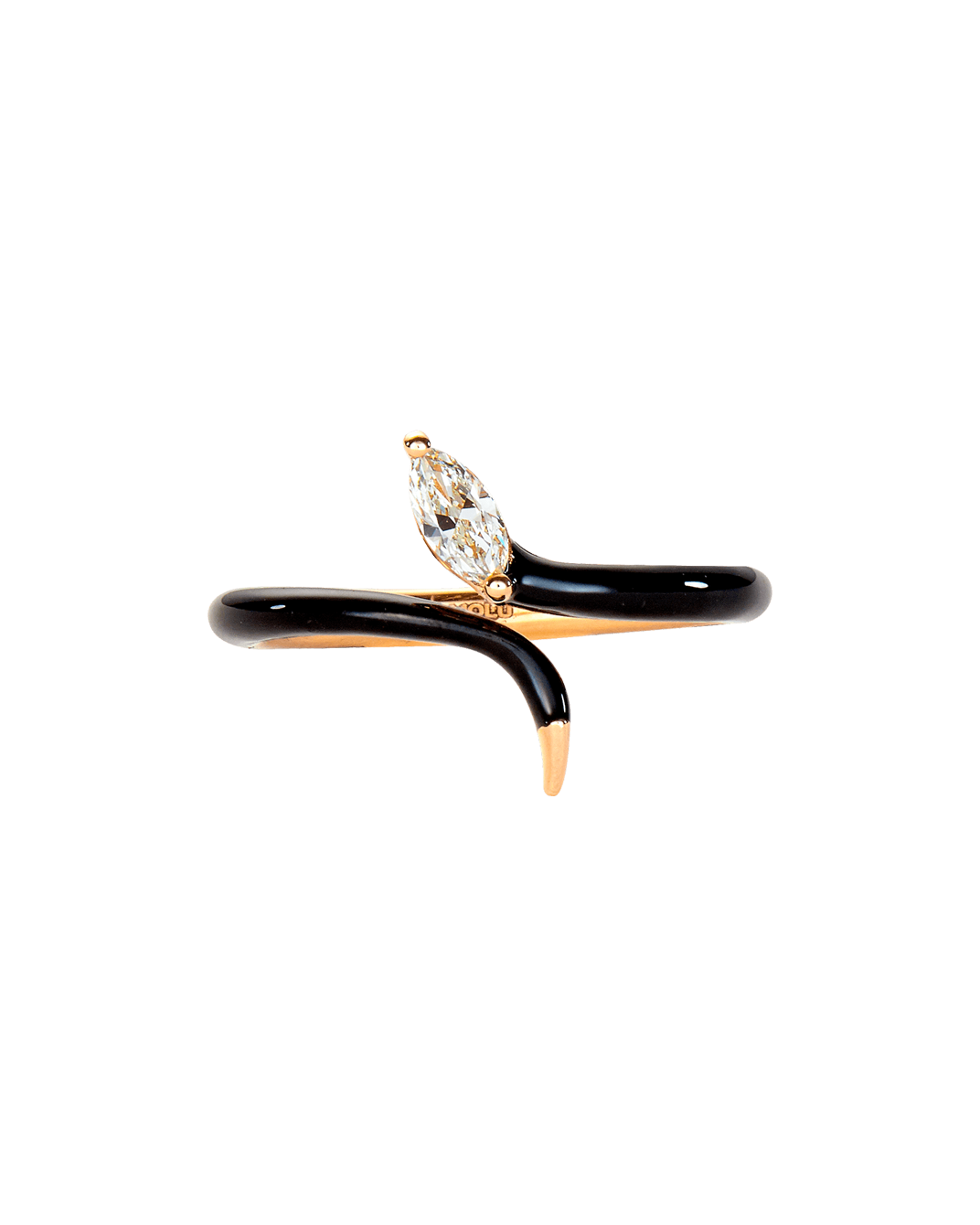 Molu Pırlantalı Siyah Mineli Yılan Yüzük: 18 Ayar Pembe Altın olarak tasarlanan yılan yüzük, siyah minenin zarafeti ve Molu pırlantasının büyüleyen ışıltısını günün her anında tarzınıza yansıtıyor.