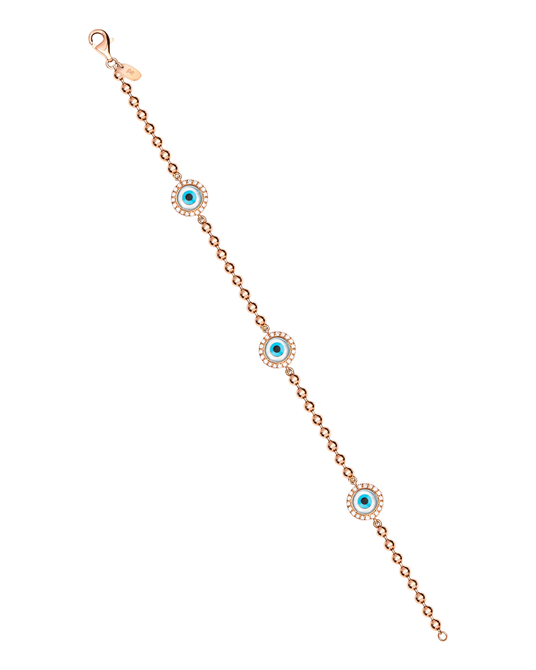 Molu Pırlantalı 14 Ve 18 Ayar Pembe Altın 3 Yuvarlak Gözlü Top Zincirli Bilezik