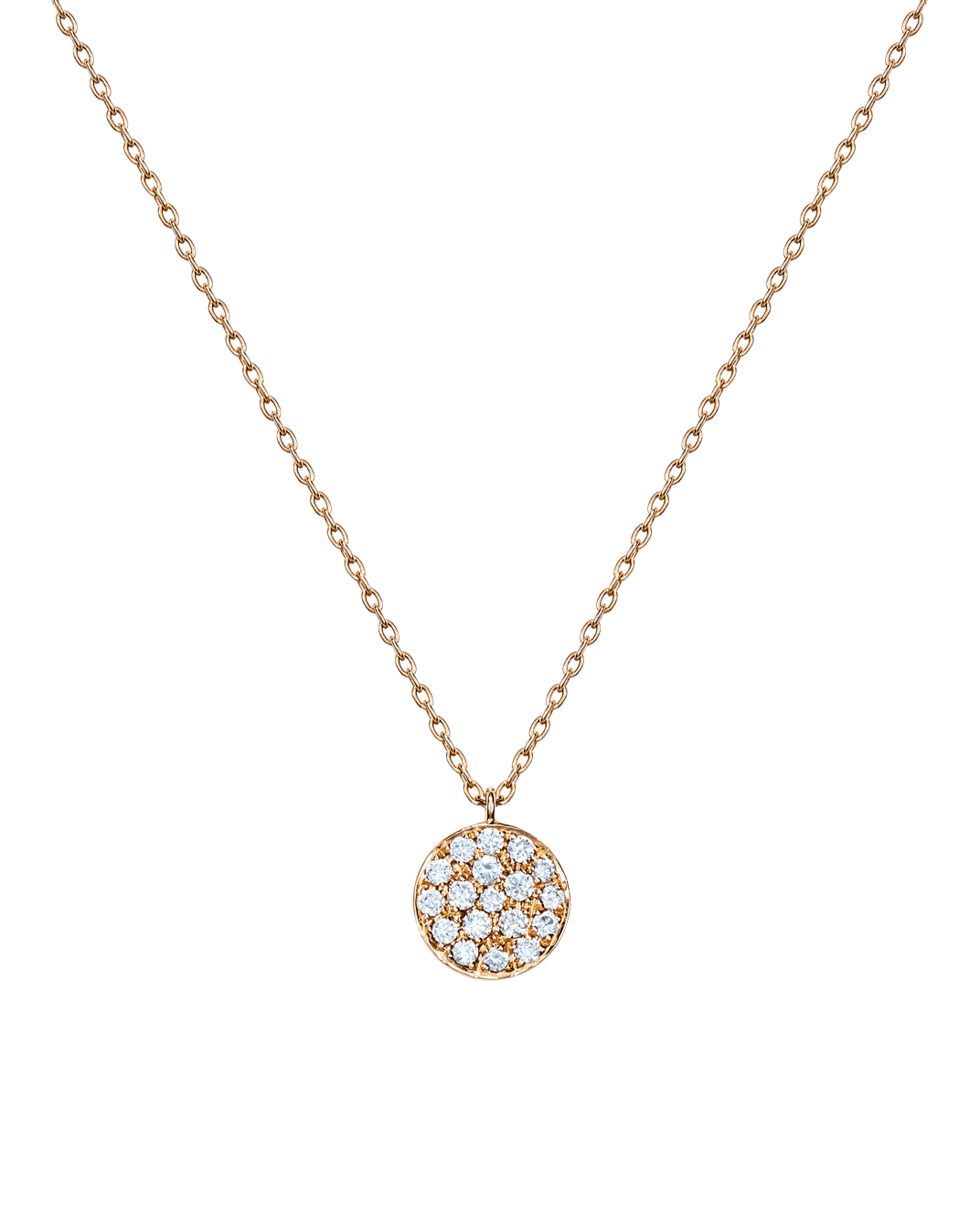 Molu Pırlantalı 18 Ayar Pembe Altın Yuvarlak Pave Kolye