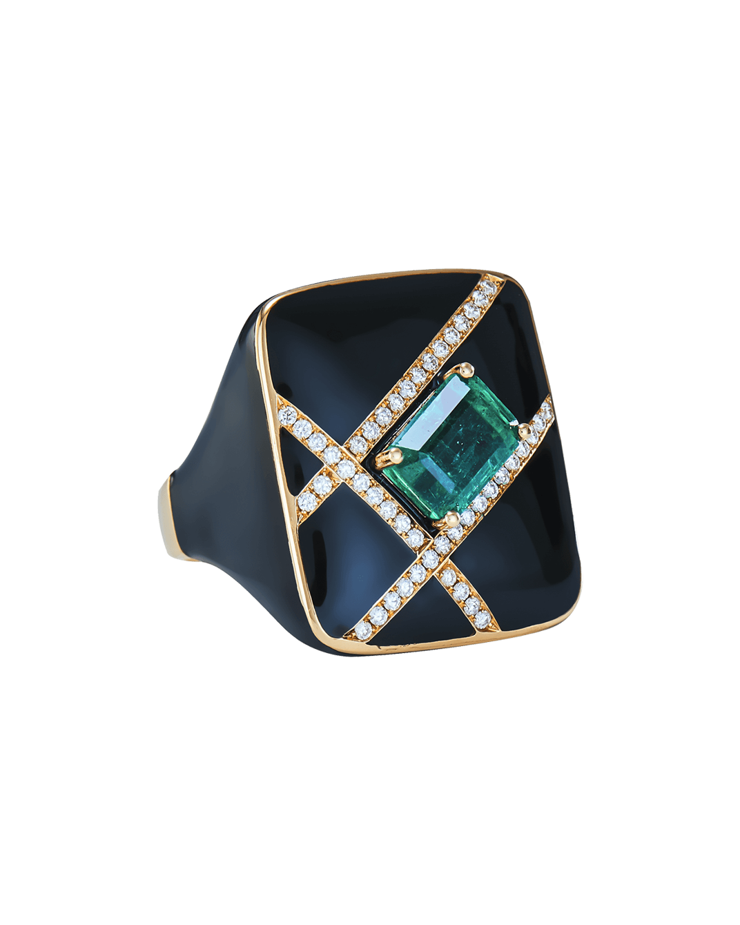 Molu Pırlantalı Zümrütlü Siyah Mineli Yüzük: 18 Ayar Pembe Altın olarak tasarlanan yüzük, siyah minenin gizemi ve zümrütün zarif dokunuşunu eşsiz Molu pırlantaları ile zamanın ötesinde bir şıklığa dönüştürüyor.