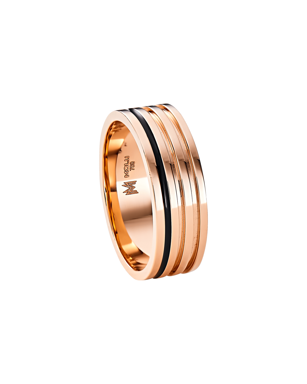 Molu Siyah Mineli Tek Kanallı Alyans: 18 Ayar Pembe Altın olarak tasarlanan alyans, üç kanallı görünümüne eşlik eden, siyah mine detayı ile ömür boyu üzerinizde hissedeceğiniz şıklığı ve modernliği taşıyor.