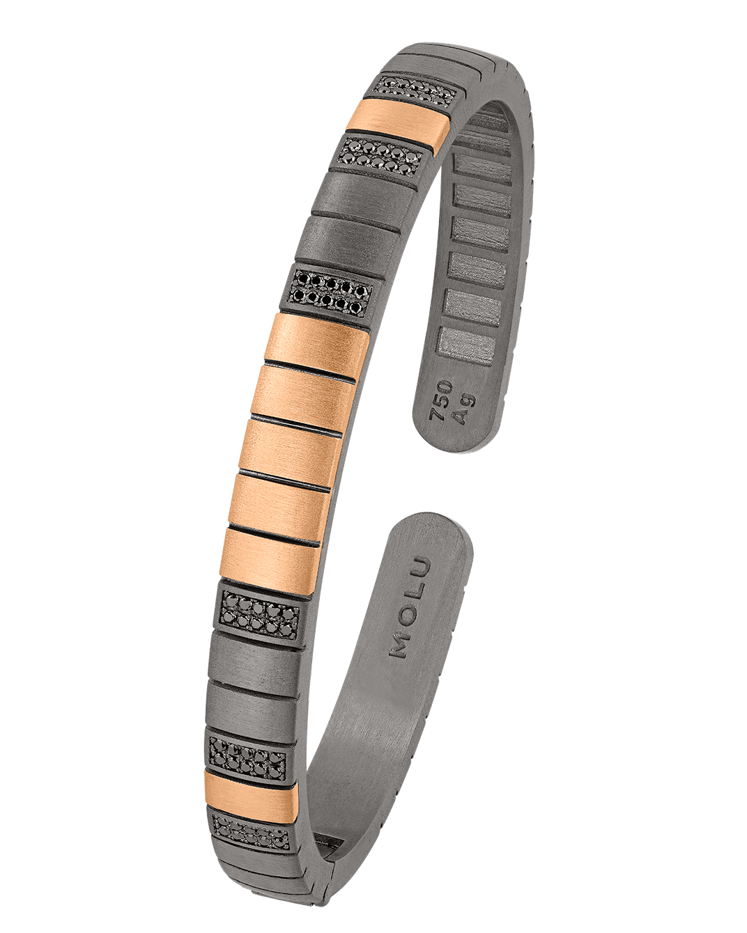 Molu Siyah Pırlantalı 18 Ayar Pembe Altın & 925 Gümüş Bilezik