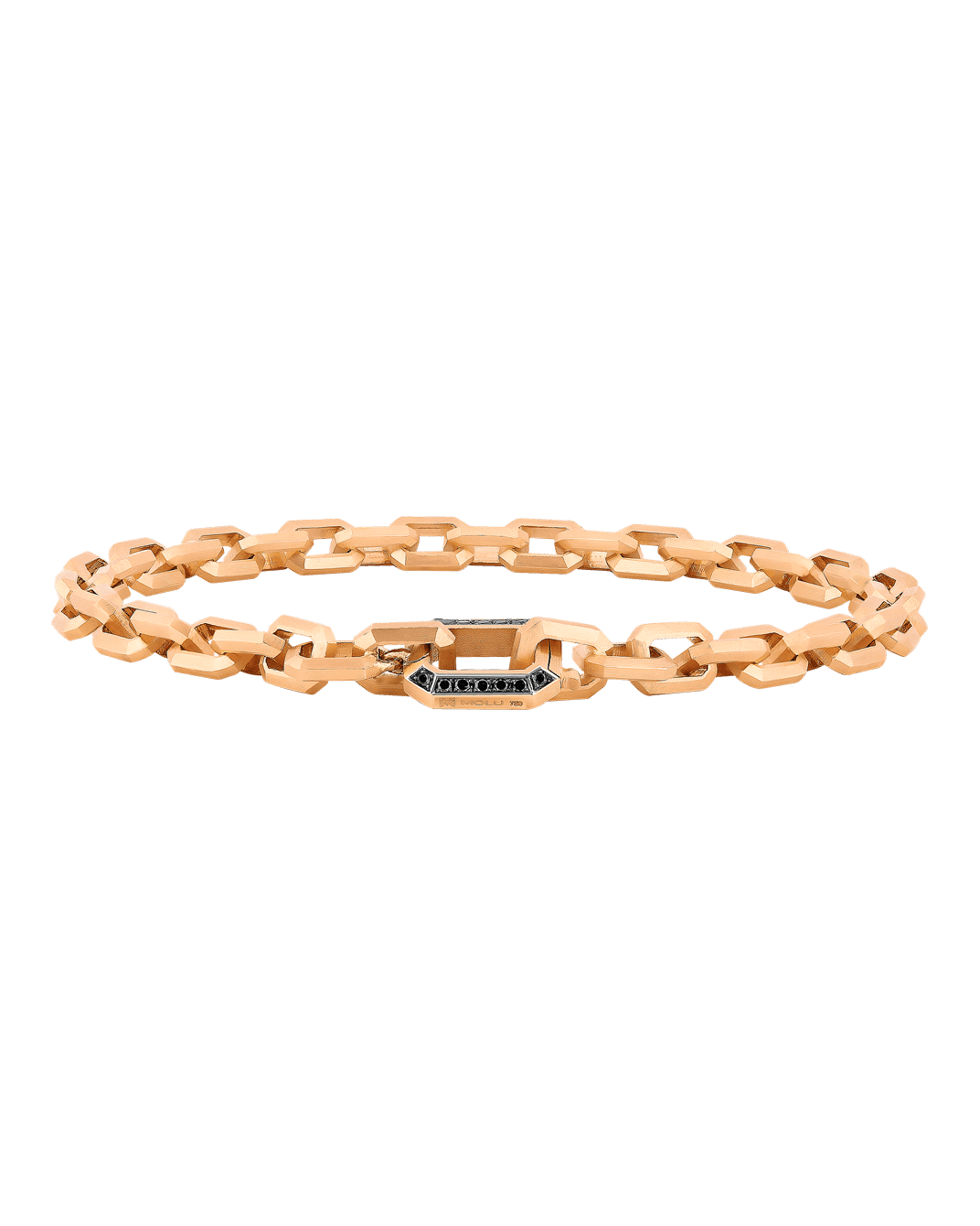 Molu Siyah Pırlantalı Altın Zincir Bilezik: 18 Ayar Pembe Altın olarak tasarlanan zincir bilezik, siyah pırlantanın asaleti ve şıklığını altının parlaklığı ile güçlendiriyor.