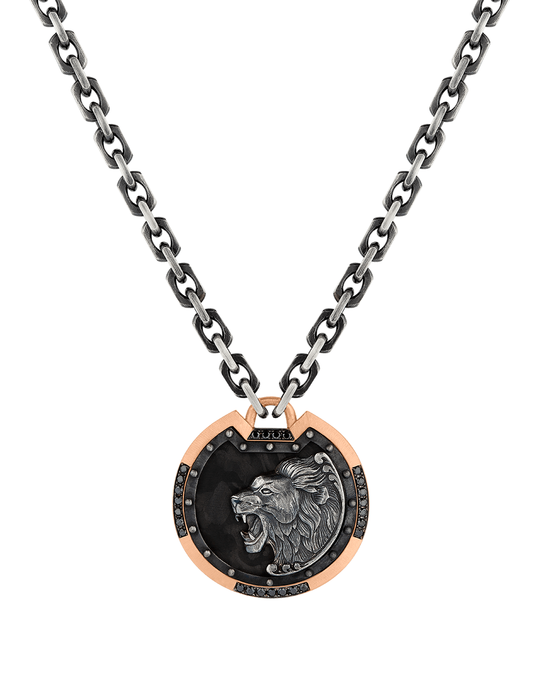 Legend Siyah Pırlantalı Aslan Figürlü 18 Ayar Pembe Altın 925 Gümüş Kalkan Kolye