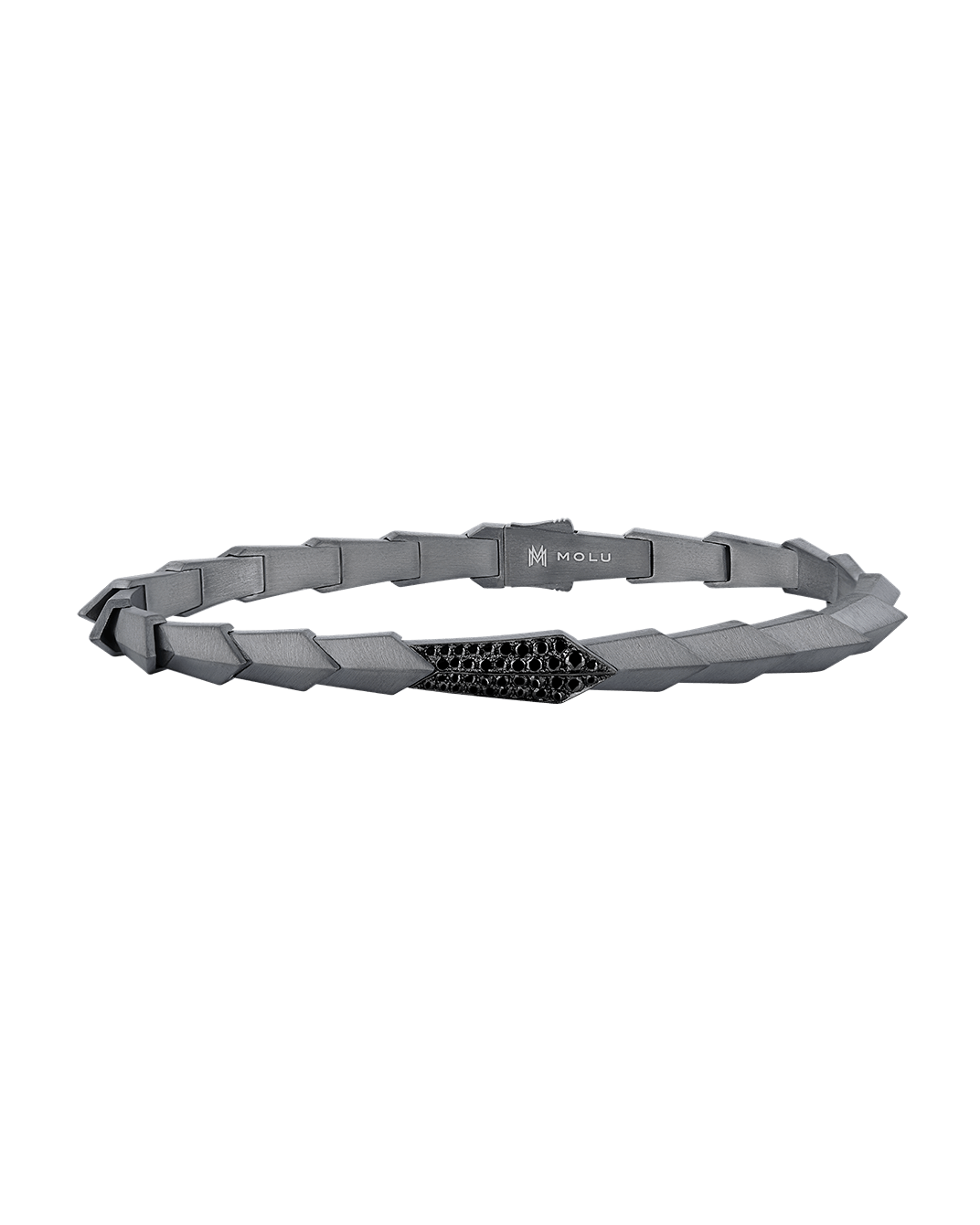 Molu Siyah Pırlantalı Gümüş Bilezik