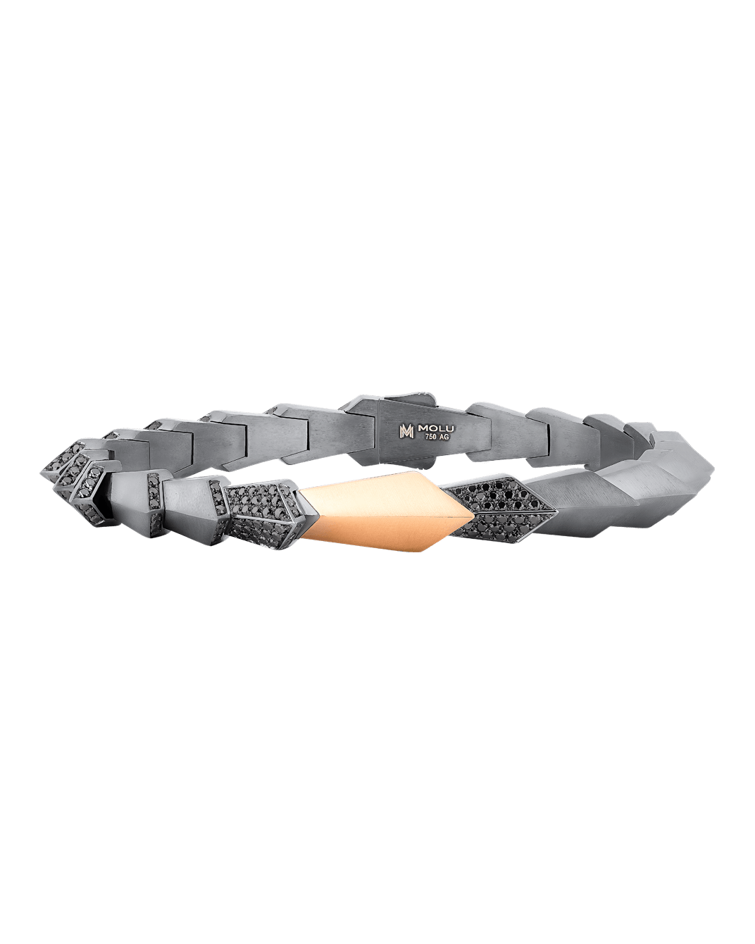Asaleti ve gücü modern bir şıklık ile tamamlayarak günümüzün trendlerini yansıtan Molu Guard of Men koleksiyonu, tarihi zırhların formlarını taşıyan detaylarla da dikkat çekiyor. Keskin kenarları ve düşmanın gözünü alan parlaklığıyla yüzyıllar öncesindeki izleri yorumlayan ve muhteşem bir tasarıma dönüştüren koleksiyonumuz; şehirli, modern erkeğin mücevherini yaratıyor. Bazen bir mızrağı, bazen bir miğferi, bazen de bir oku anımsatan mücevherler, en iyi ustalarımızın elinde hayat buluyor. Siyahın gücünü ve sihrini kullanan ve onu değerli taşların ve altının parlaklığıyla buluşturan Molu tasarımcıları, Molu Guard of Men koleksiyonun her bir tasarımını nadide bir parçaya dönüştürdü.