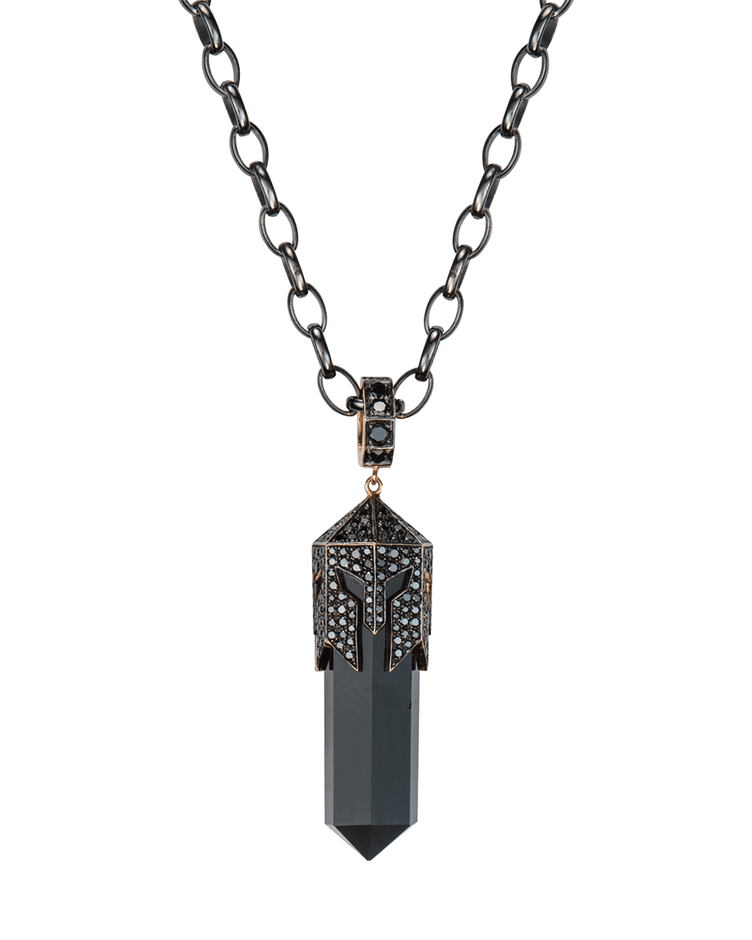Molu Siyah Pırlantalı Altın Kolye: 18 Ayar Pembe Altın ve siyah pırlantanın güçlü uyumunu taşıyan kolye, Molu'nun usta işçiliği ile sofistike bie şehir stiline bürünüyor.