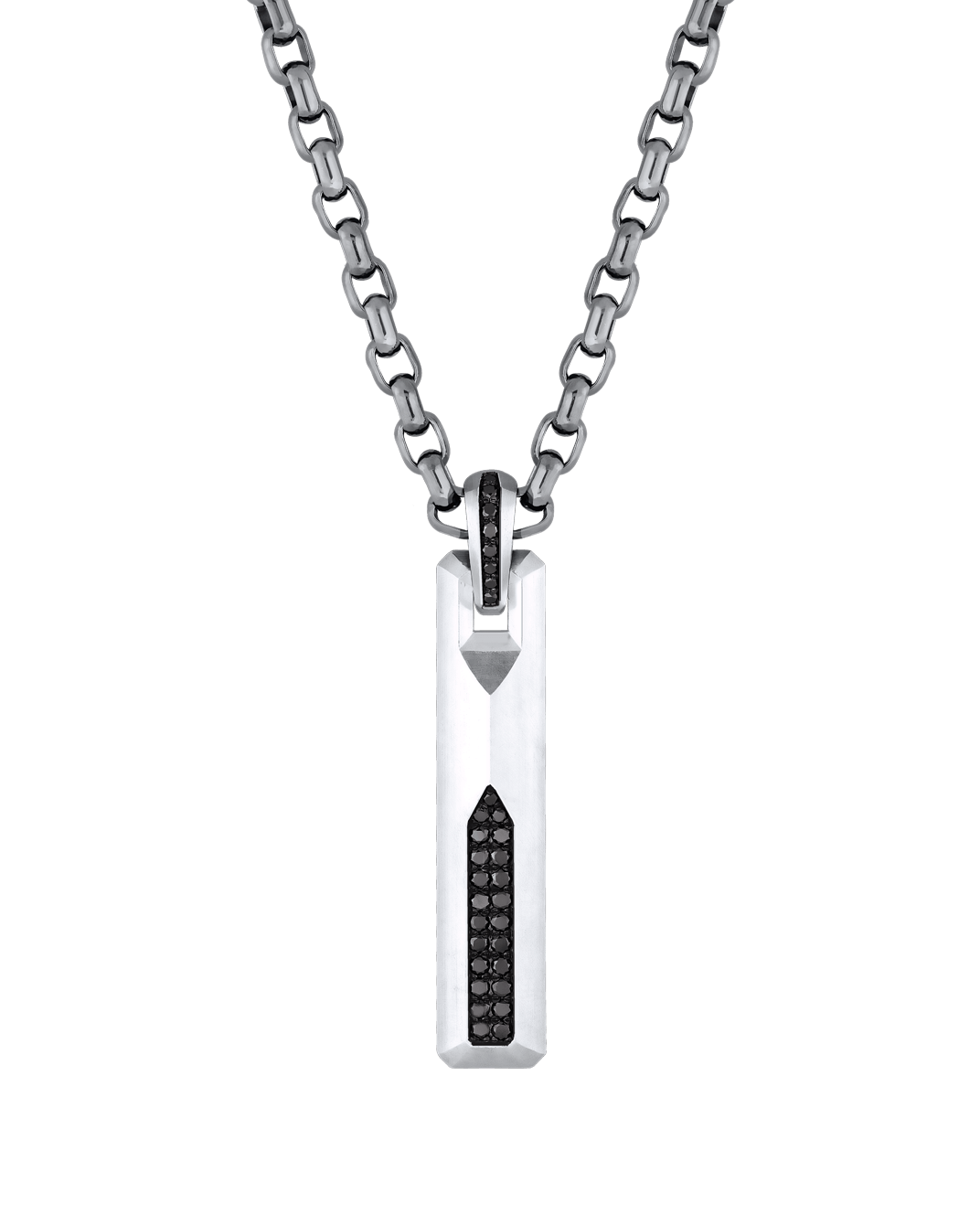 Molu Siyah Pırlantalı Gümüş Kolye: 925 Ayar Gümüş ve siyah pırlantanın güçlü uyumunu taşıyan kolye, eski zamanlara ait ‘okçuluk’ temasından aldığı ilhamı Molu’nun usta işçiliği ile birleştiriyor.