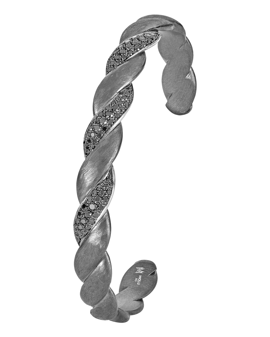 Molu Siyah Pırlantalı Gümüş Örgü Bilezik: 925 Ayar Gümüş olarak tasarlanan örgü bilezik, siyah pırlantanın güçlü dokunuşu ile dinamik ve özgür bir şehir tarzını benimsiyor.