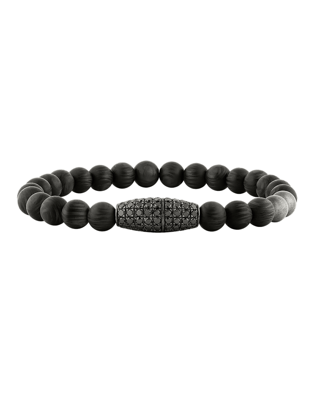 Molu Siyah Pırlantalı Gümüş Toplu Karbon Fiber Bilezik