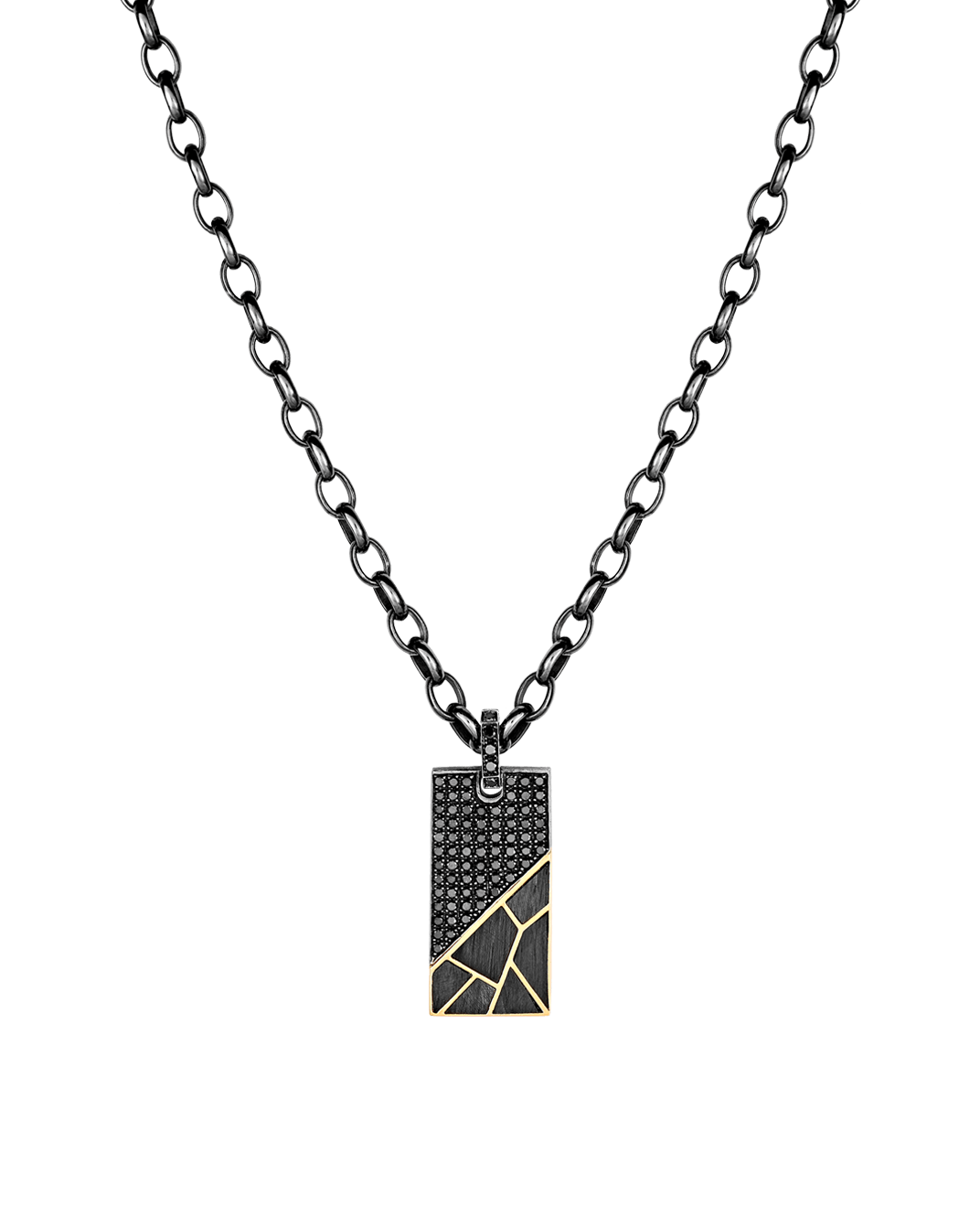 Molu Siyah Pırlantalı Karbon Fiber Kolye