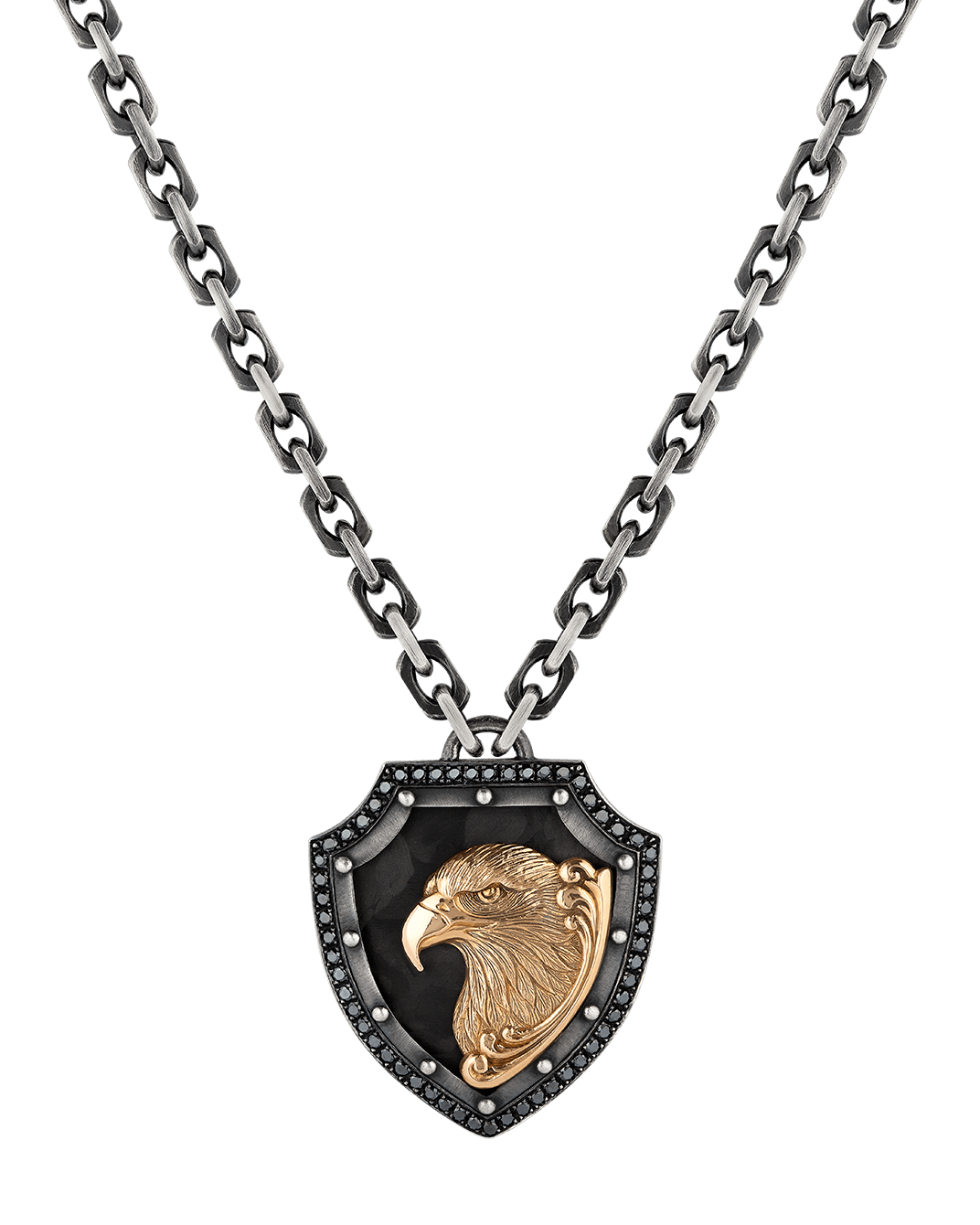 Molu Legend Siyah Pırlantalı Kartal Figürlü 18 Ayar Pembe Altın 925 Gümüş Kalkan Kolye