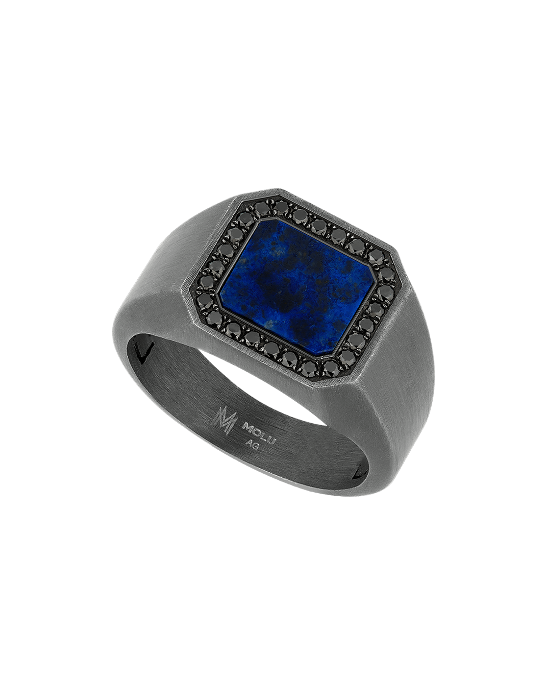 Molu Siyah Pırlantalı 925 Gümüş Lapis Lazuli Yüzük