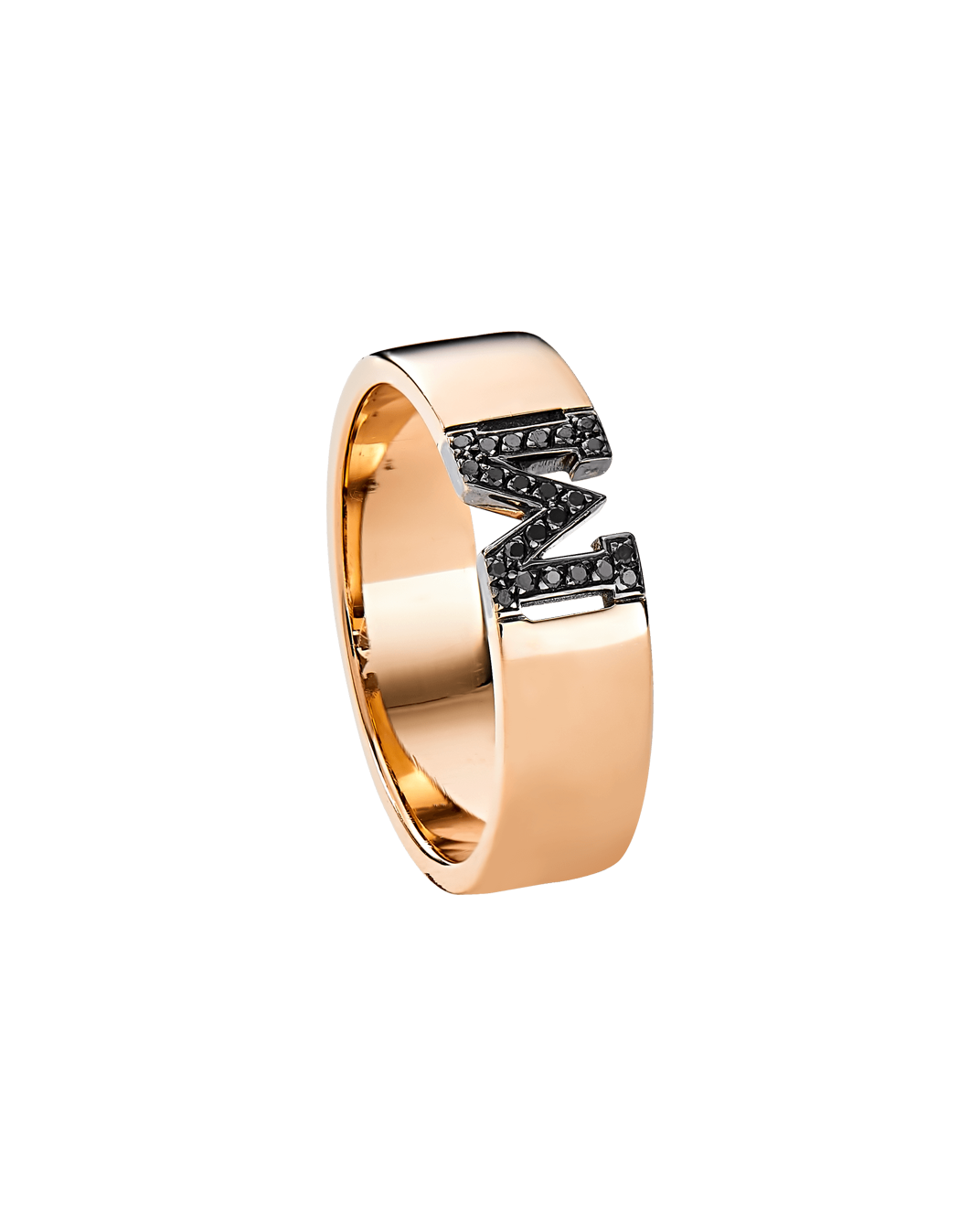 Molu Siyah Pırlantalı 18 Ayar Pembe Altın M Harfli Alyans