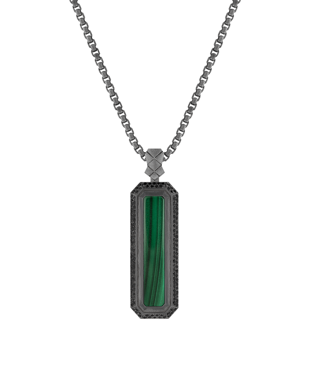 Molu Siyah Pırlantalı Malahitli Gümüş Kolye