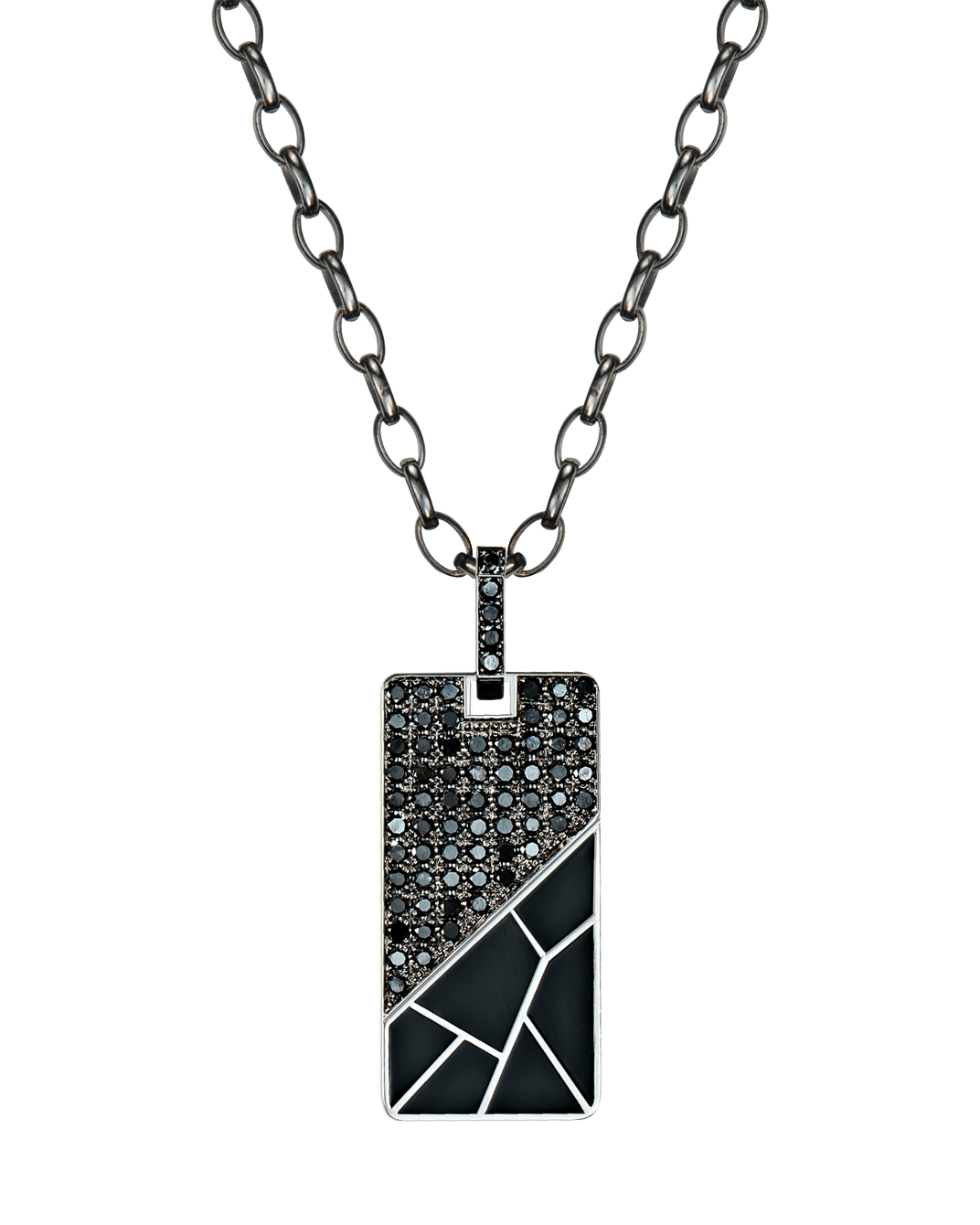 Molu Siyah Pırlantalı Siyah Mineli 18 Ayar Beyaz Altın 925 Gümüş Kolye