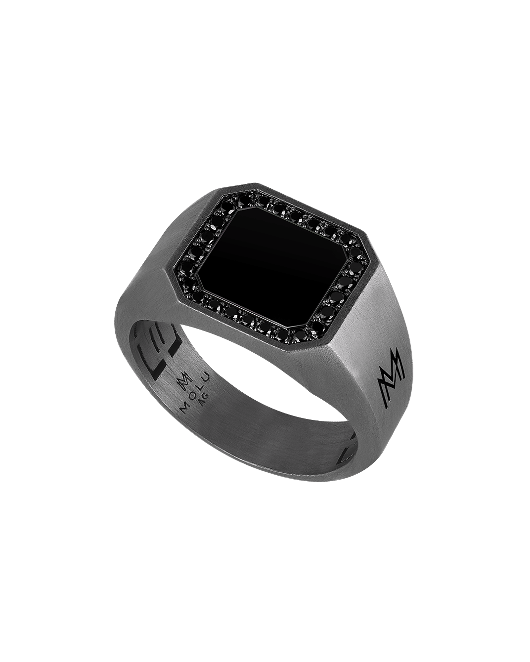 Molu Siyah Pırlantalı Siyah Mineli Sekizgen Gümüş Yüzük