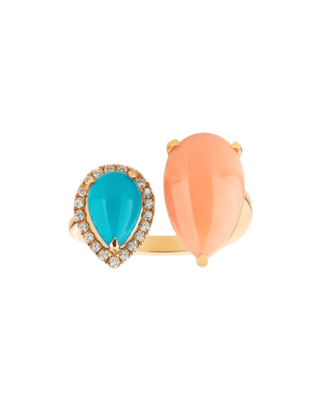 Tropica Colors Pırlantalı Damla Turkuaz ve Pembe Mercanlı Yüzük
