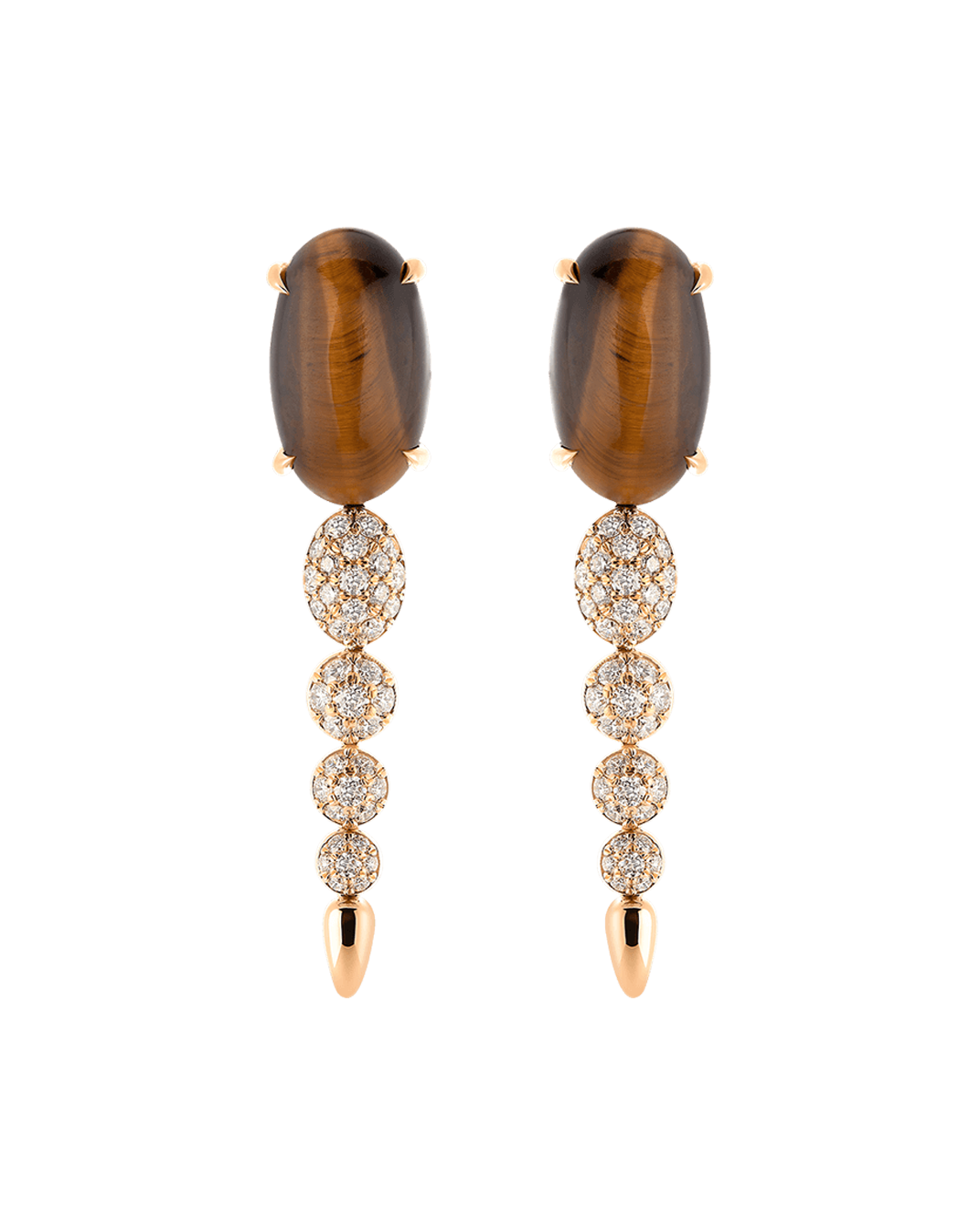 Tropica Pırlantalı 18 Ayar Pembe Altın Kaplan Gözü Taşlı Sallantılı Küpe