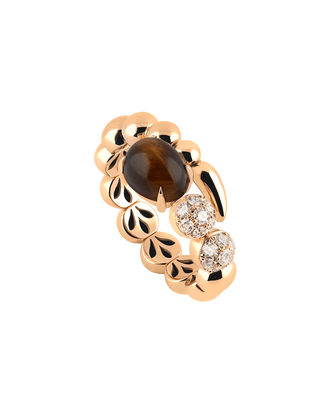 Tropica Pırlantalı 18 Ayar Pembe Altın Kaplan Gözü Taşlı Yaylı Yüzük