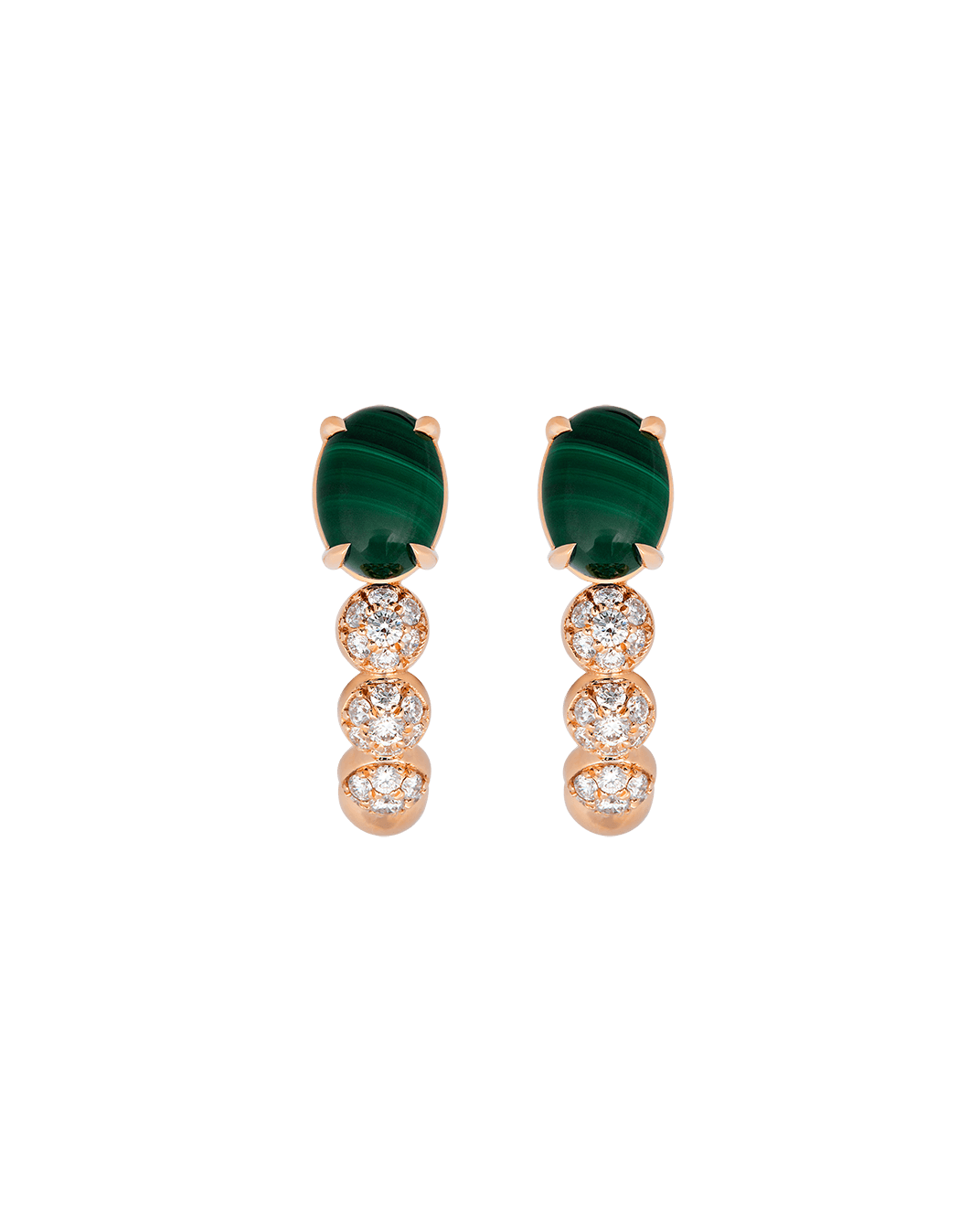 Tropica Pırlantalı 18 Ayar Pembe Altın Malahitli Halka Küpe