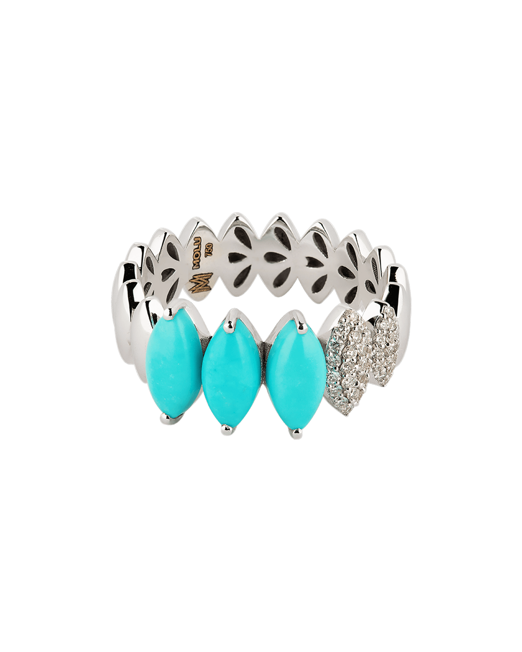 Tropica Colors Pırlantalı 18 Ayar Beyaz Altın Turkuazlı Yüzük