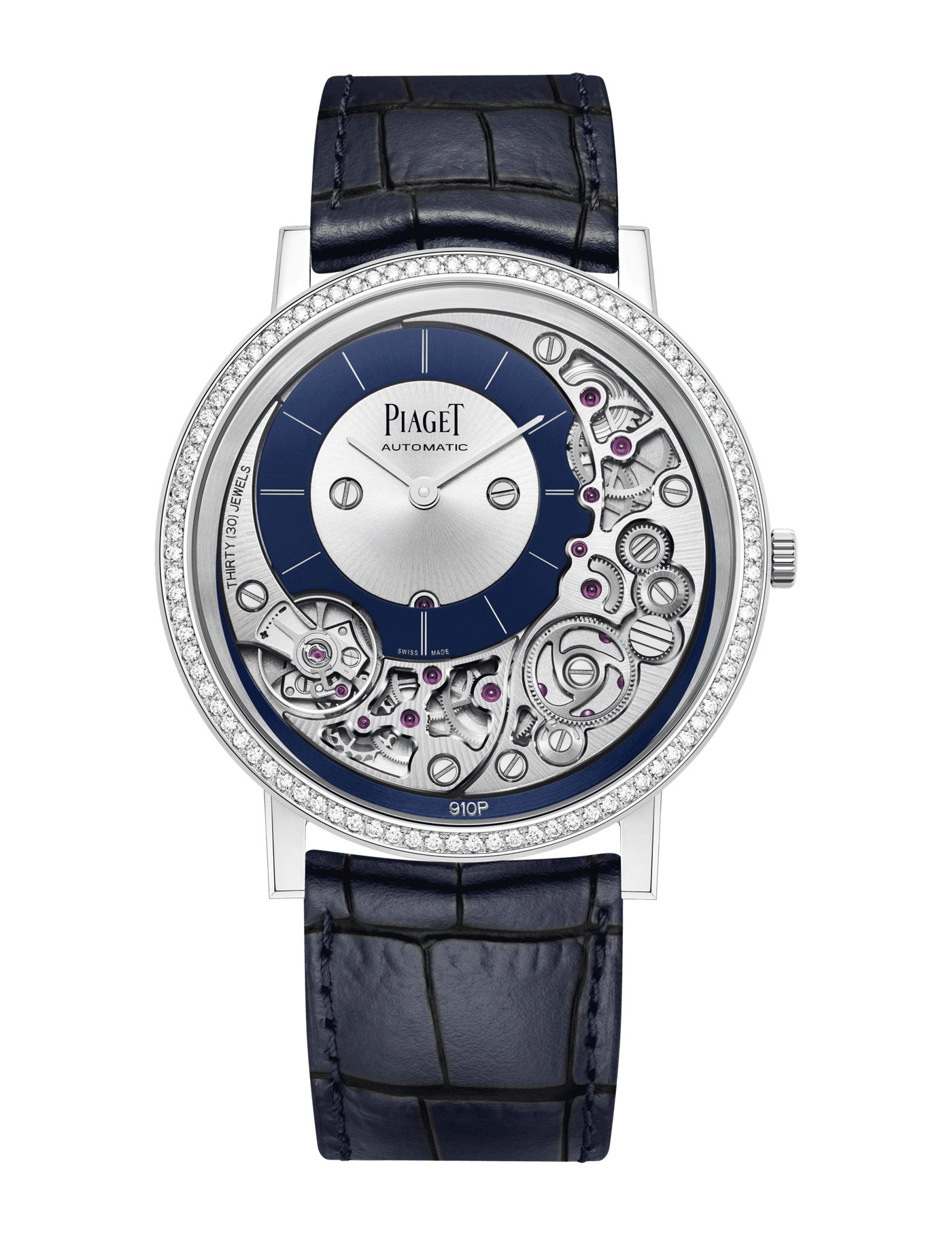 Altiplano Ultimate Automatic watch, 41 mm. Case in rhodium finish 18K white gold set with 90 brilliant-cut diamonds (approx. 0.58 ct). One of the thinnest automatic watches in the world: 5.30 mm, a total symbiosis between the case and the Manufacture movement. Manufacture 910P, ultra-thin automatic mechanical movement.