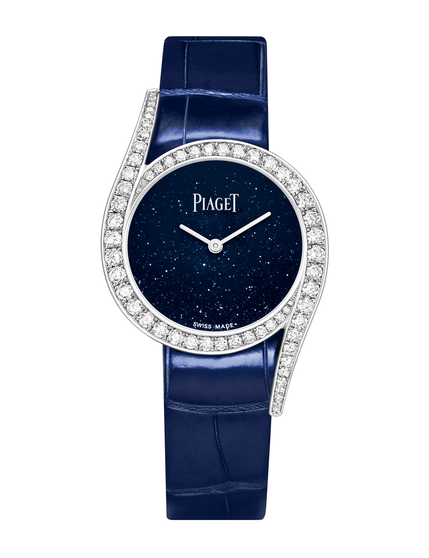 Limelight Gala watch, 26 mm. Case in rhodium finish 18K white gold set with 60 brilliant-cut diamonds (approx. 0.92 ct). Blue aventurine glass dial. Buckle set with a brilliant-cut diamond (approx. 0.01 ct). Piaget 59P quartz movement. Limited edition of 300.