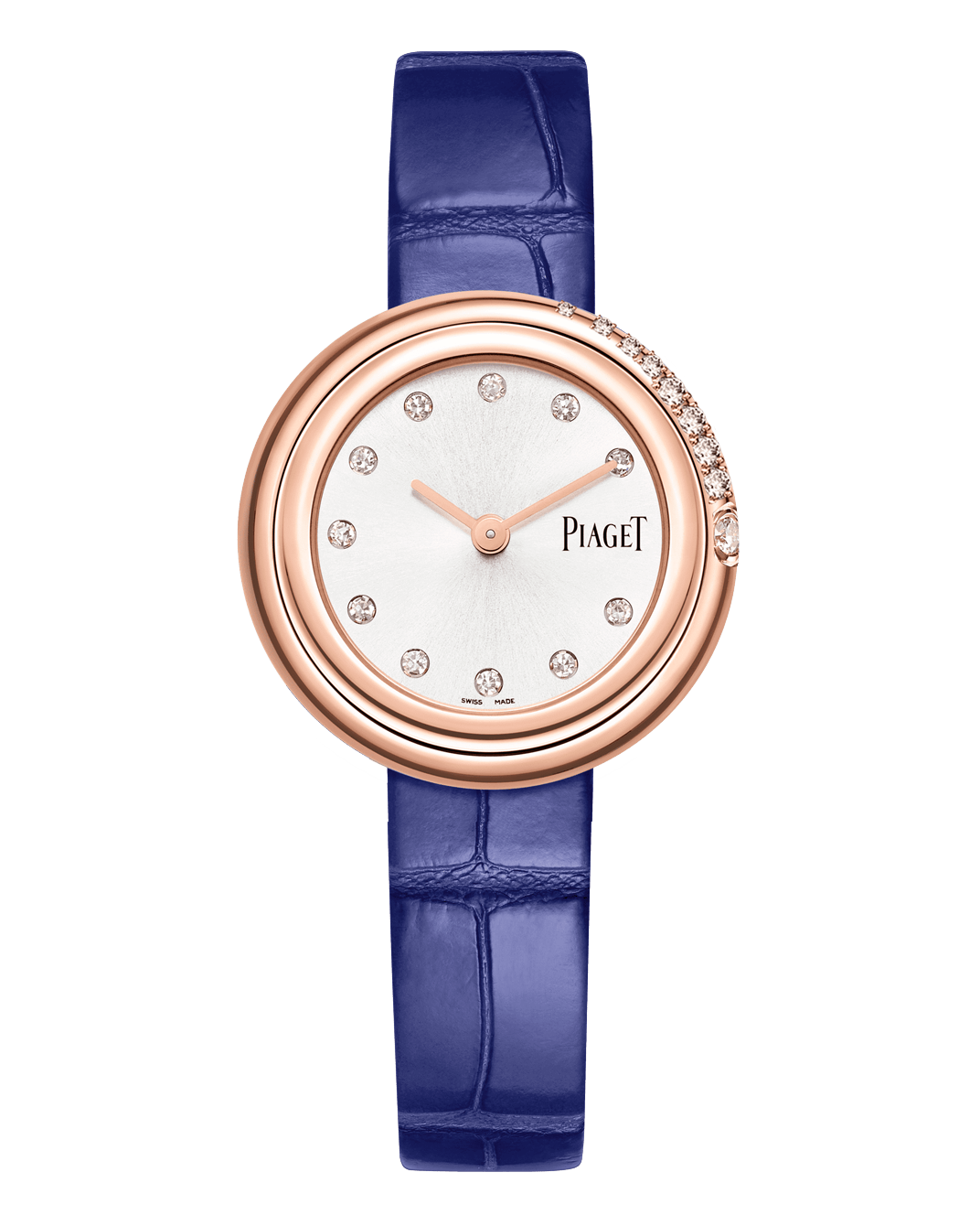 The 29 mm Possession diamond watch with a progressive diamond setting on its bezel. As the first jewellery watch collection the Maison created, the Possession collection is one that has always captivated and empowered women. This contemporary addition is a rose gold diamond watch with a silvered dial that elegantly shines in the light. Its signature turning ring makes this luxury watch for women an enchanting timepiece that enthrals you with endless play. A watch with interchangeable straps that allow it to perfectly mould itself to your needs. From cocktail party to a work meeting, it adapts to your style. Recognisably Piaget, enjoy this exceptional gold diamond watch with a dynamic energy like no other.