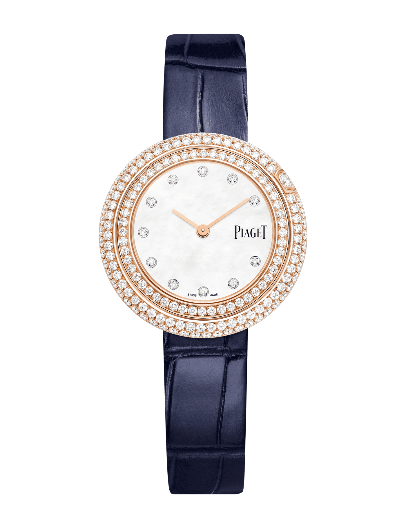 The 29 mm Possession diamond watch with a 18K rose gold case set with brilliant-cut diamonds, and a mother-of-pearl dial. Adorn your wrist with this vivacious Possession rose gold diamond watch. A swiss luxury watch that enchants you with each turn of its diamond-encrusted rotating bezel. Playfulness is embedded at the core of this iconic collection; Possession pieces are designed to enrich the every day with a lively spirit. Functionality meets versatility, not only does this watch feature a diamond-set turning bezel, it also comes with options of interchangeable straps to mix and match to your style. This versatile luxury women's watch is the perfect everyday accessory, ready to accompany you anywhere, whatever the occasion.