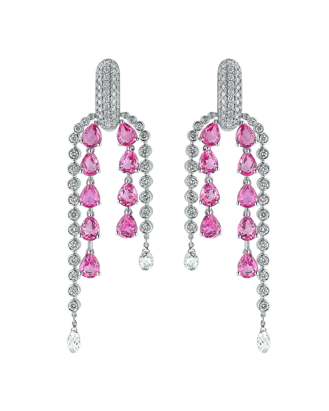 Today's Princess Pırlantalı Pembe Safirli 18 Ayar Beyaz Altın Küpe