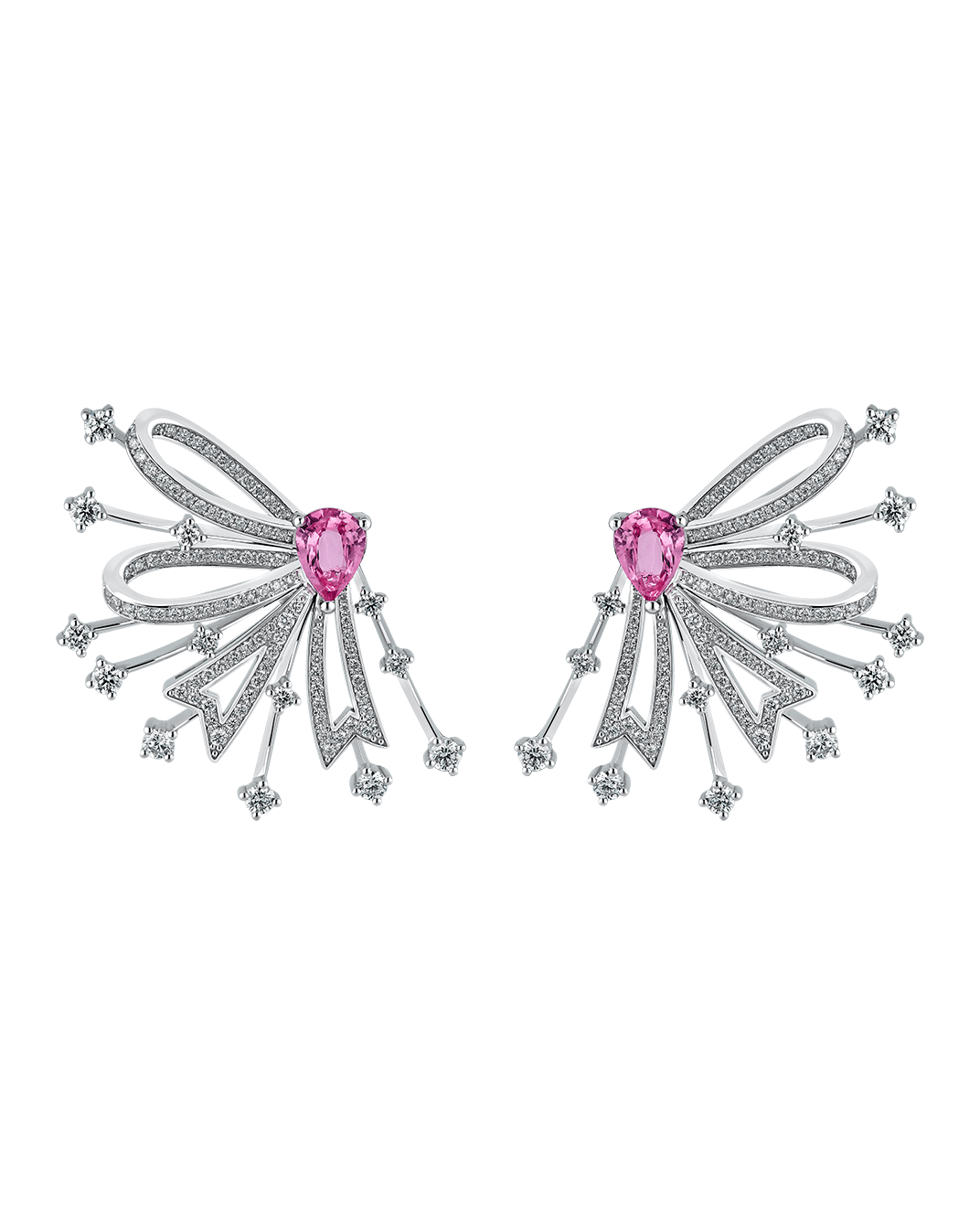Today's Princess Pırlantalı Pembe Safirli 18 Ayar Beyaz Altın Küpe