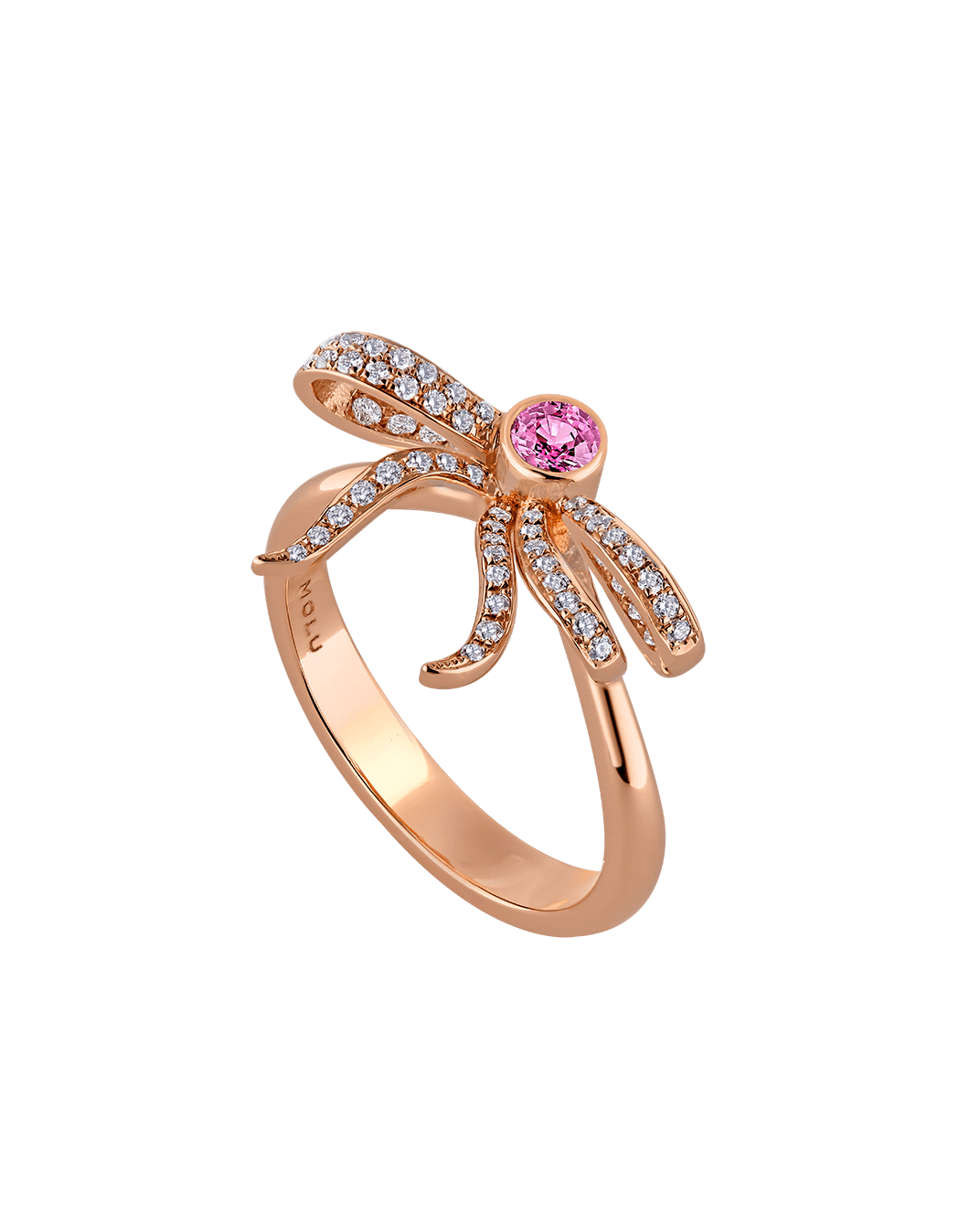 Today's Princess Pırlantalı 18 Ayar Pembe Altın Pembe Safirli Kurdele Yüzük