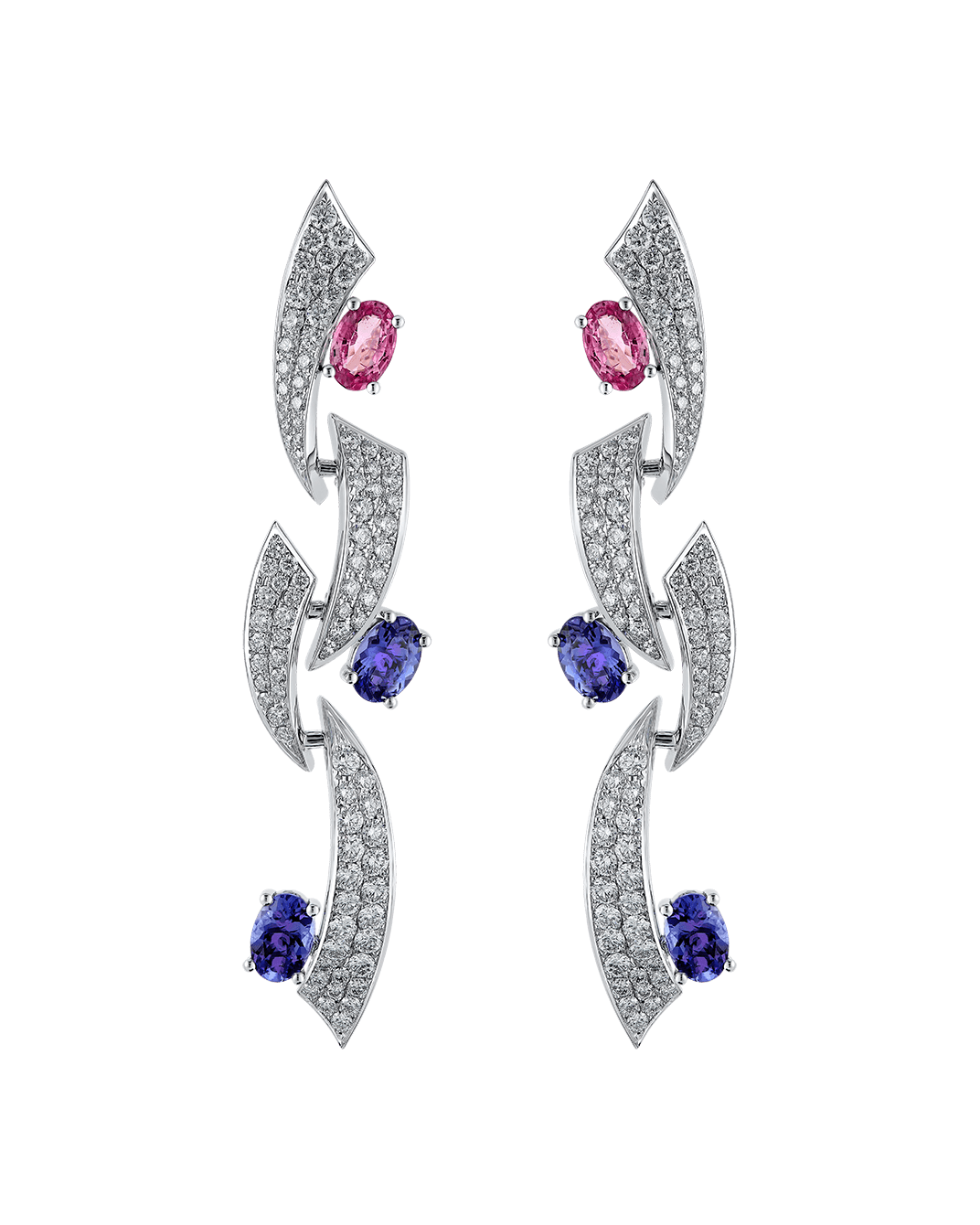 Today's Princess Pırlantalı Pembe Safirli Tanzanitli 18 Ayar Beyaz Altın Sallantılı Küpe