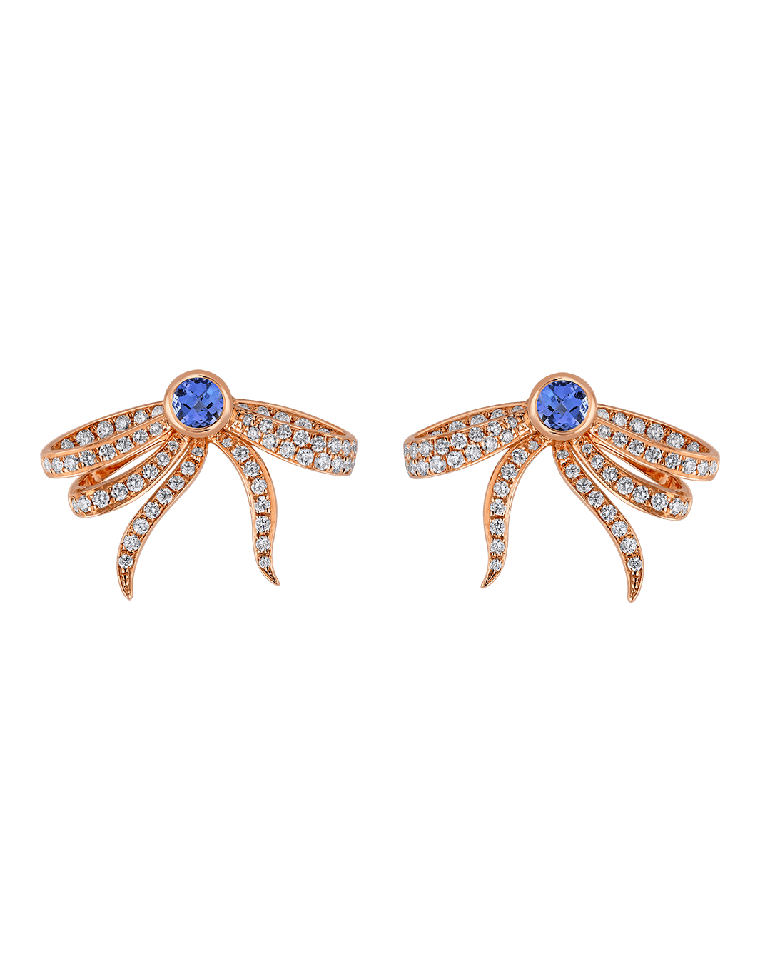 Today's Princess Pırlantalı 18 Ayar Pembe Altın Tanzanitli Kurdele Küpe