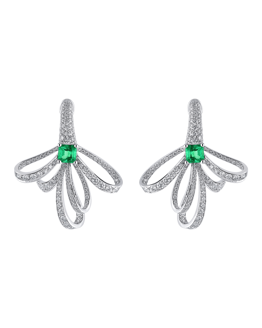 Today's Princess Pırlantalı Zümrütlü 18 Ayar Beyaz Altın Küpe