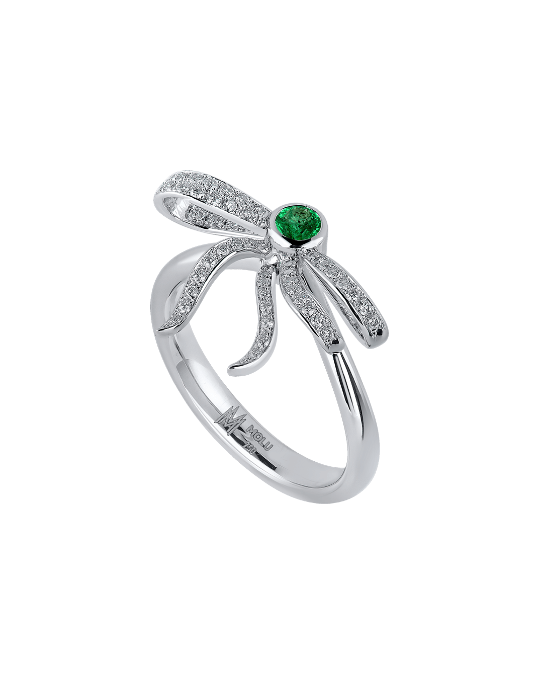 Today's Princess Pırlantalı Zümrütlü 18 Ayar Beyaz Altın Kurdele Yüzük