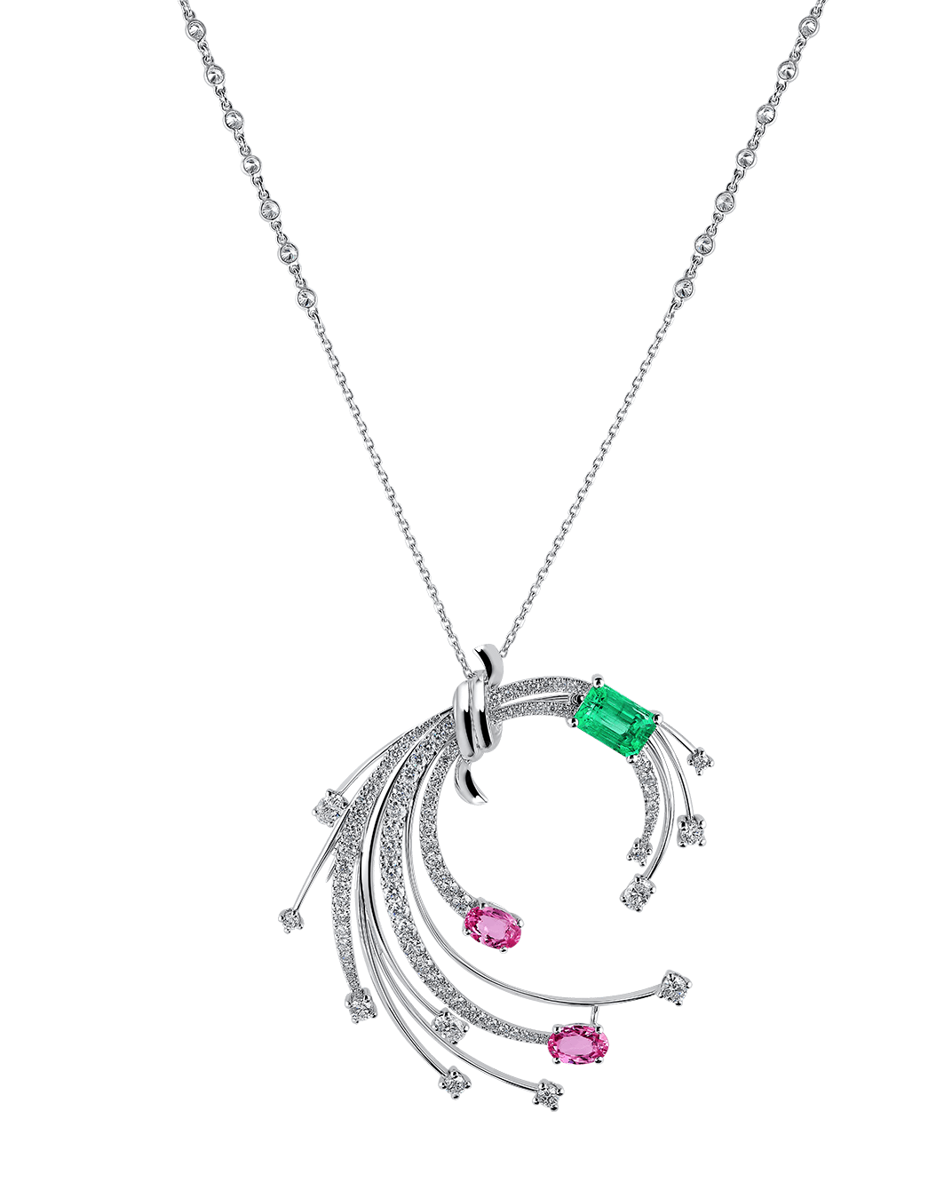 Today's Princess Pırlantalı Zümrütlü Pembe Safirli 18 Ayar Beyaz Altın Kolye