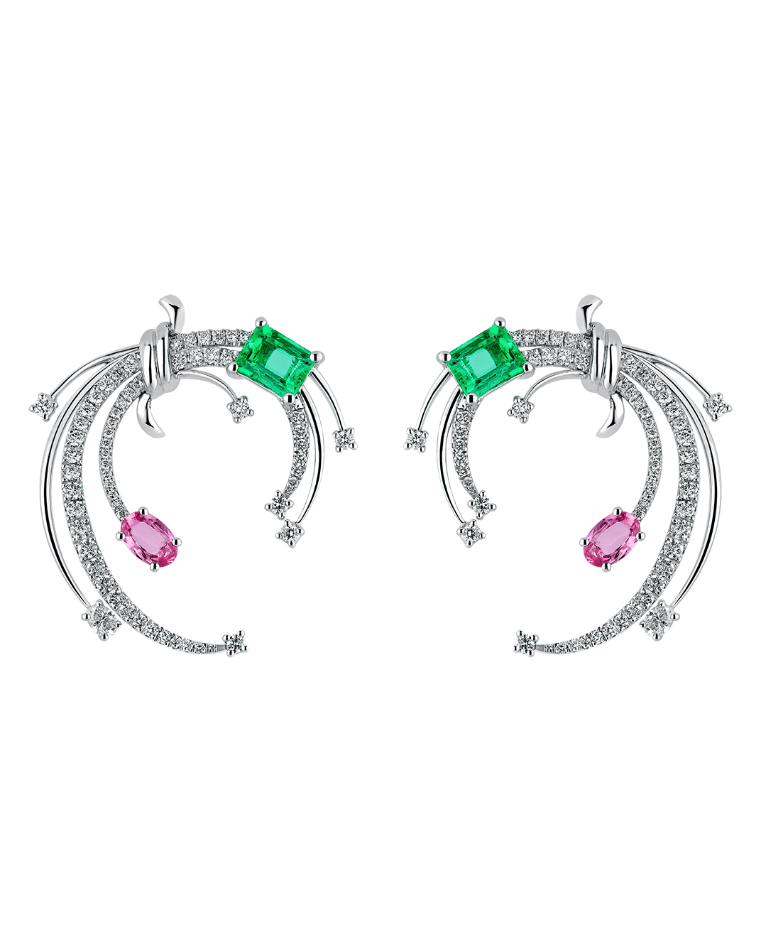 Today's Princess Pırlantalı Zümrütlü Pembe Safirli 18 Ayar Beyaz Altın Küpe