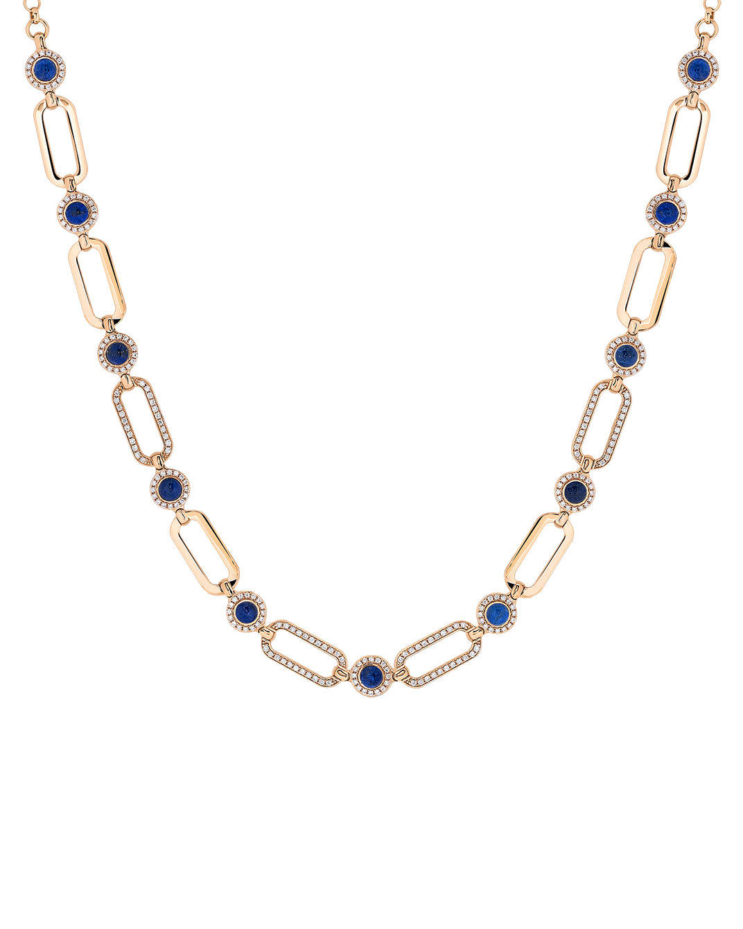 Tropica Chain Pırlantalı 18 Ayar Pembe Altın Lapis Lazuli Kolye