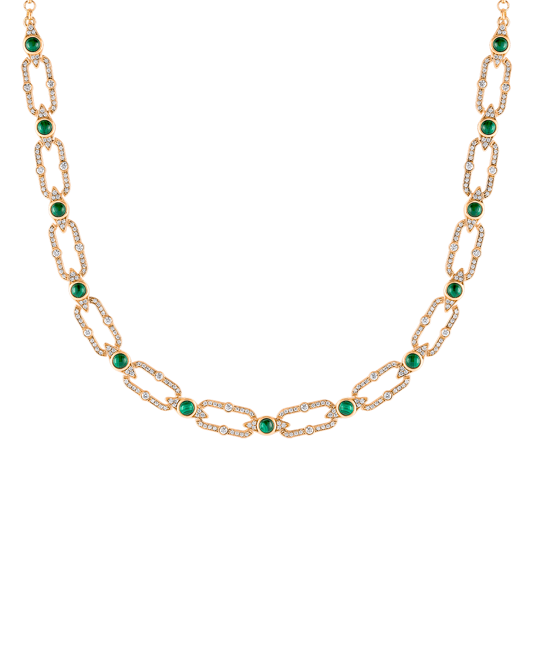 Tropica Chain Pırlantalı 18 Ayar Pembe Altın Malahitli Kolye