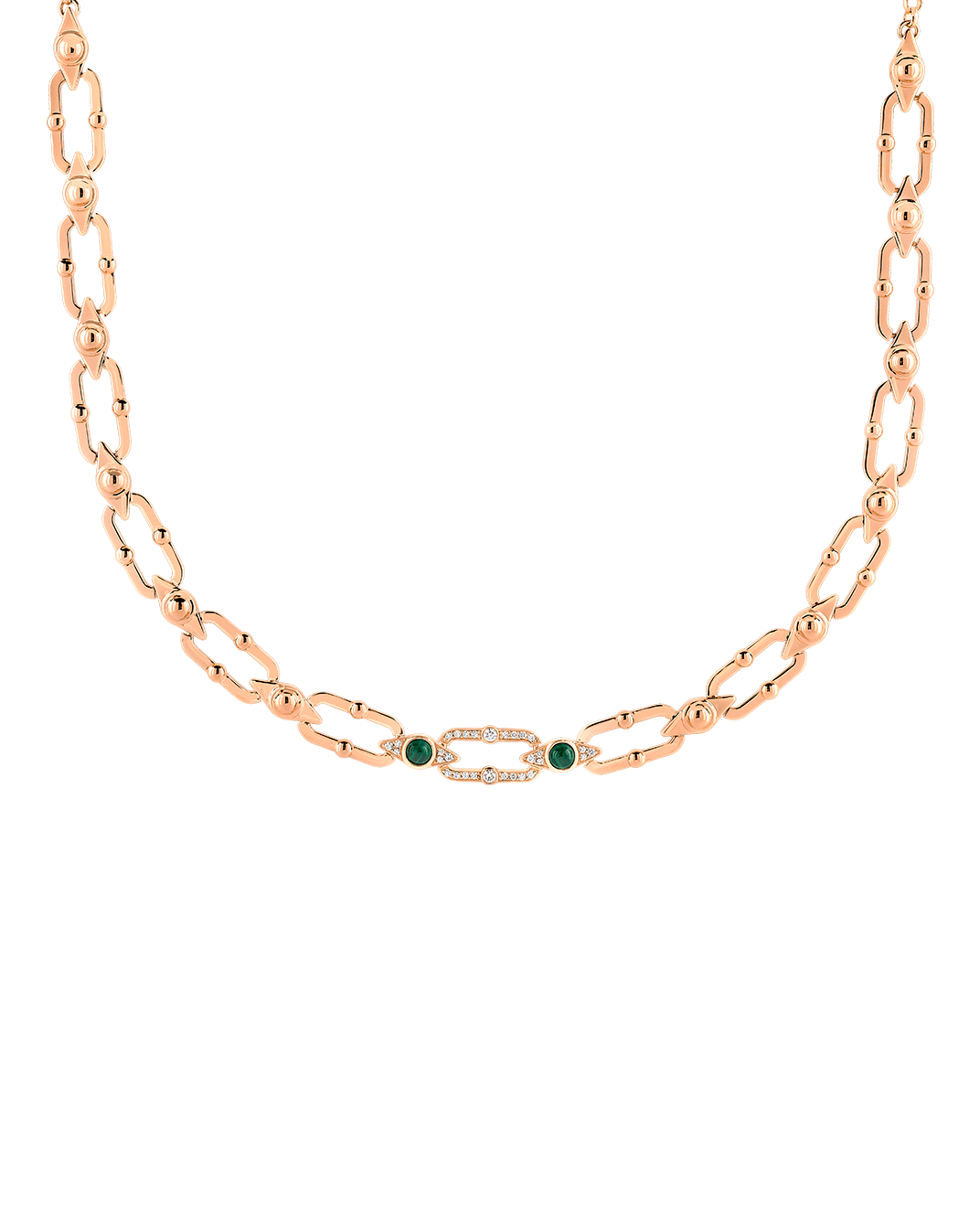 Tropica Chain Pırlantalı 18 Ayar Pembe Altın Malahitli Kolye