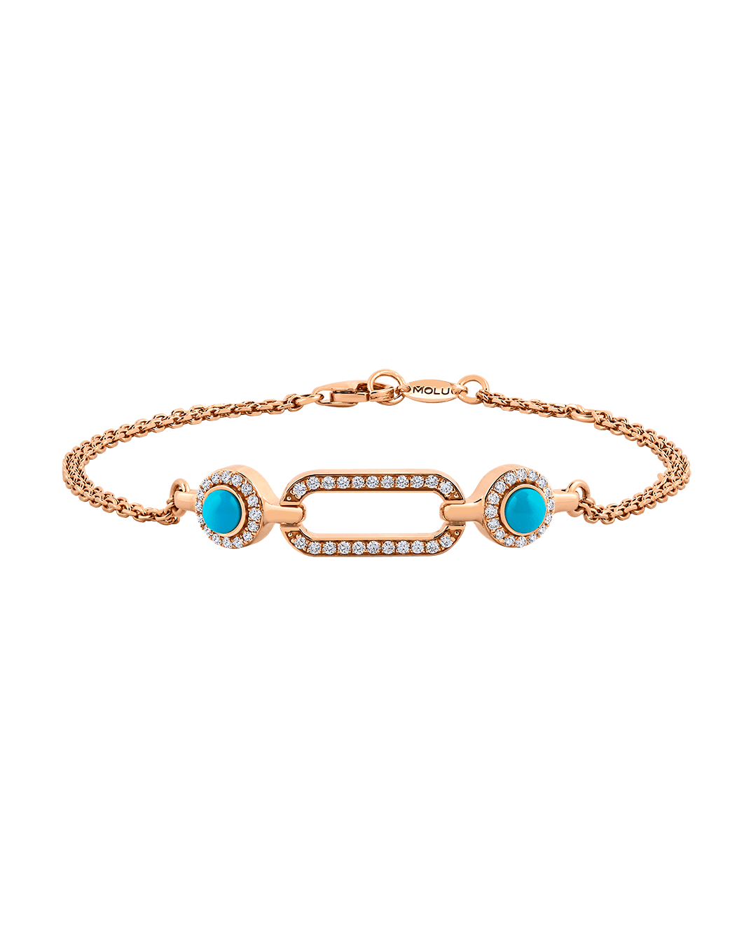 Tropica Chain Pırlantalı 18 Ayar Pembe Altın Turkuazlı Bilezik