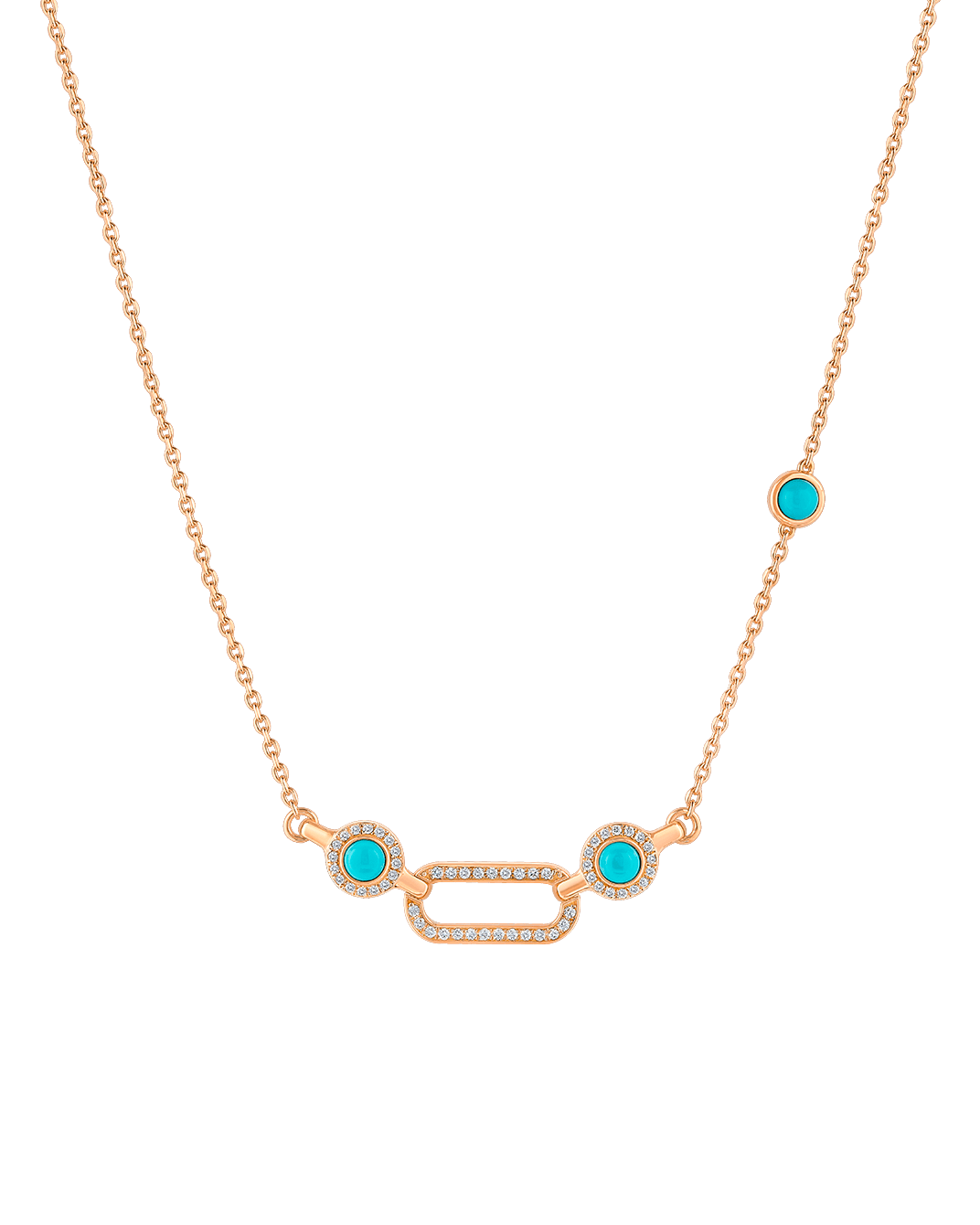 Tropica Chain Pırlantalı 18 Ayar Pembe Altın Turkuazlı Kolye