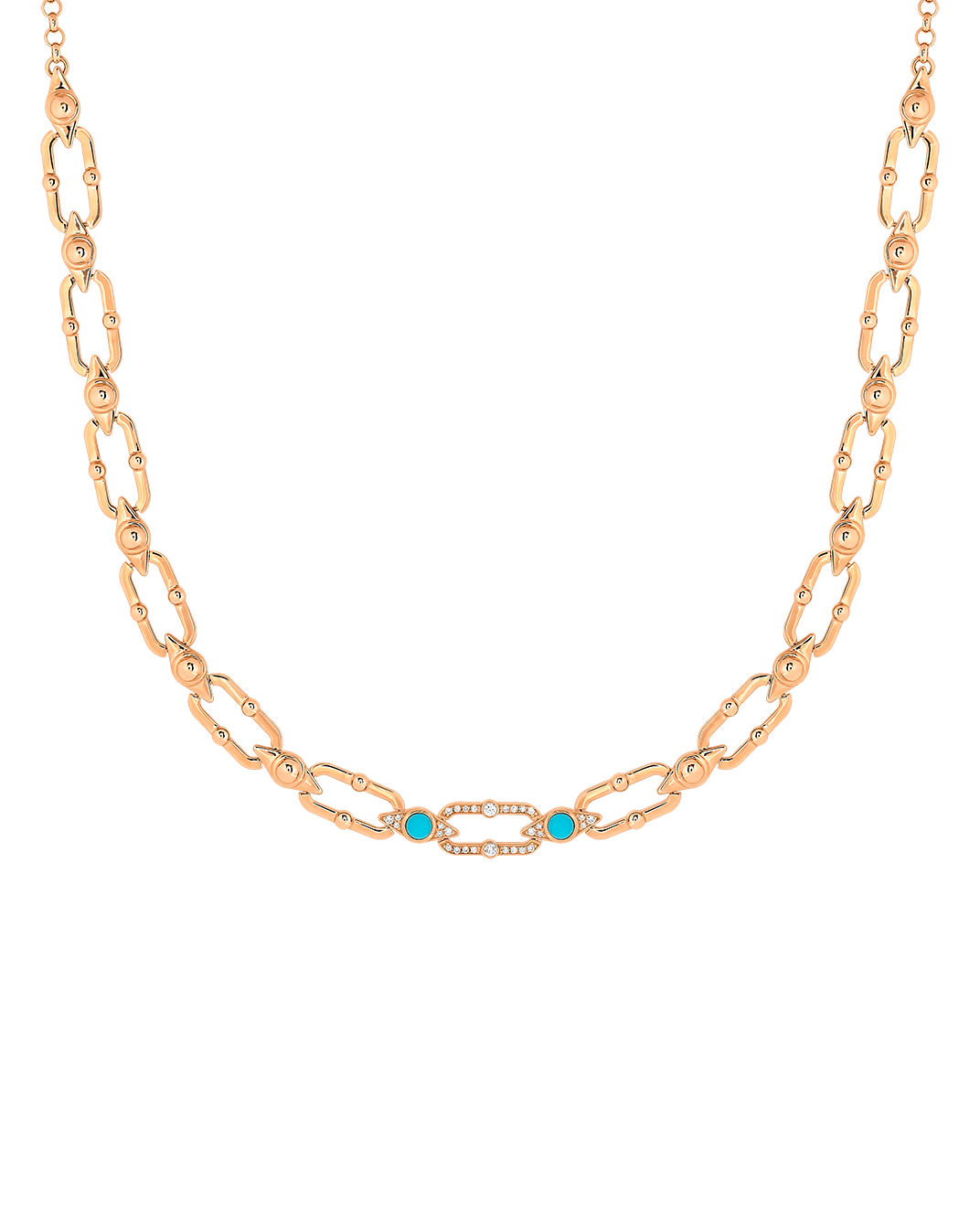 Tropica Chain Pırlantalı 18 Ayar Pembe Altın Turkuazlı Kolye