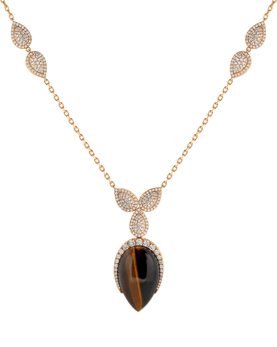 Tropica Colors Pırlantalı 18 Ayar Pembe Altın Kaplan Gözlü Kolye