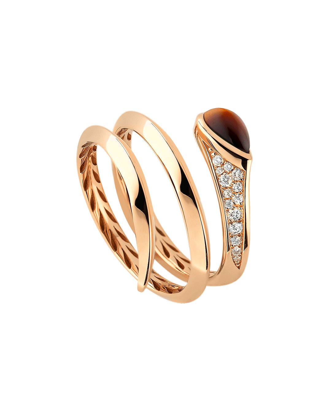 Tropica Colors Pırlantalı 18 Ayar Pembe Altın Damla Kaplan Gözü Sarmal Yüzük