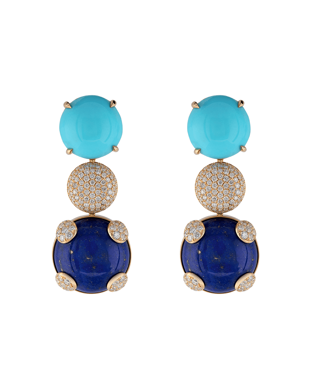 Tropica Colors Pırlantalı 18 Ayar Pembe Altın Lapis Lazuli Turkuazlı Küpe