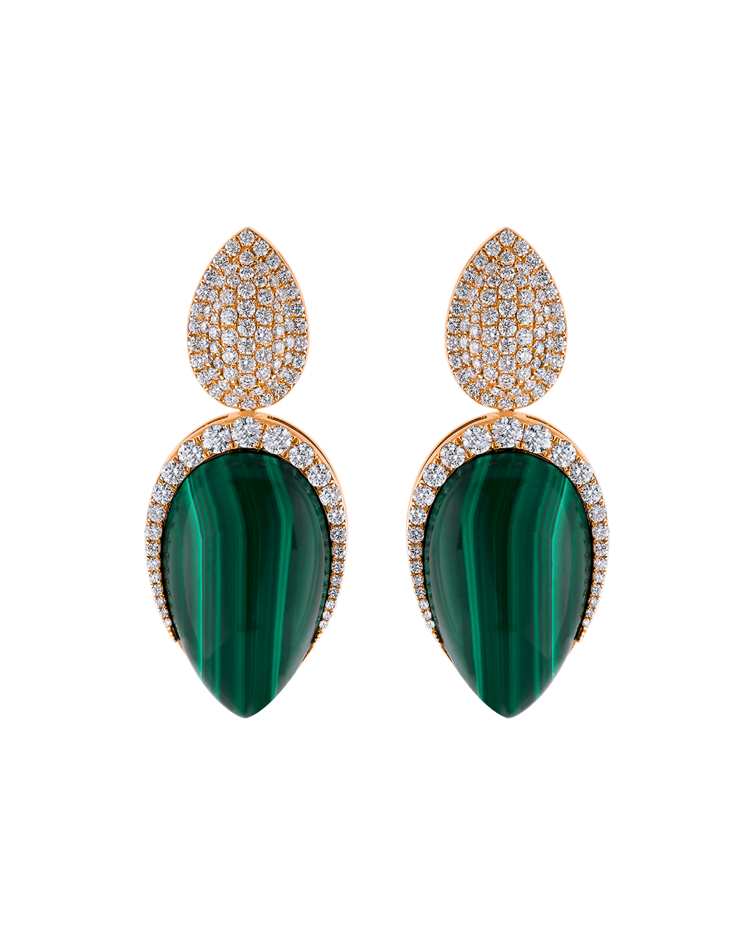 Tropica Colors Pırlantalı 18 Ayar Pembe Altın Malahitli Küpe
